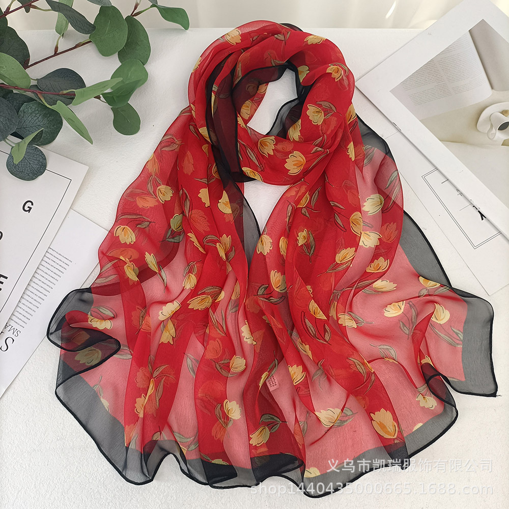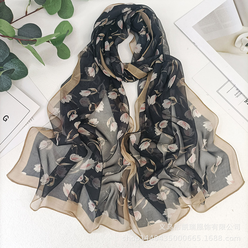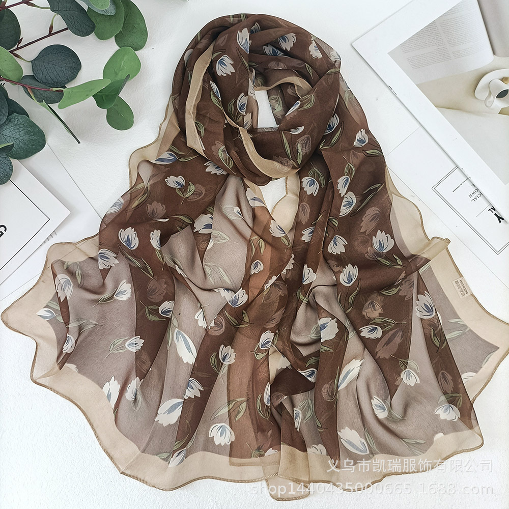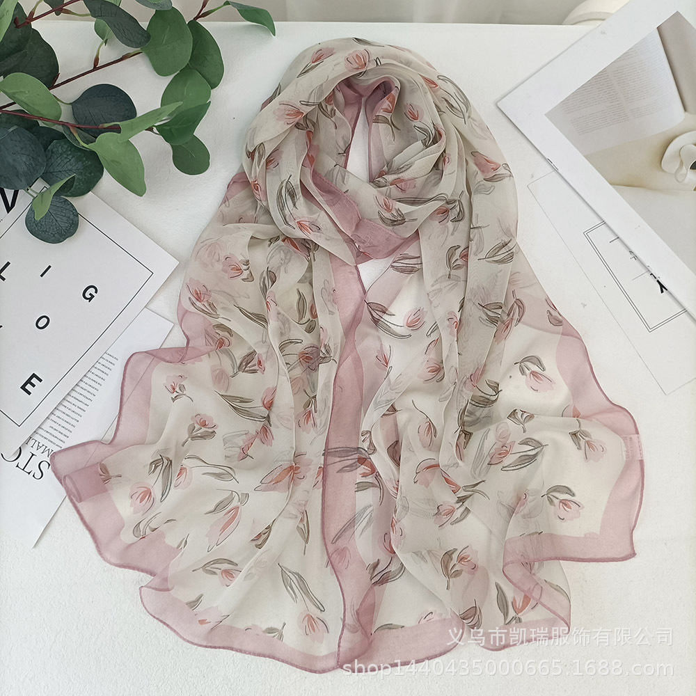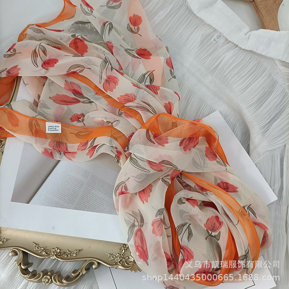 새로운 한국식 롱 씬 스카프 한국식 봄 여름 자외선 차단제 목련 만능 어머니 스카프 목 스몰 스카프