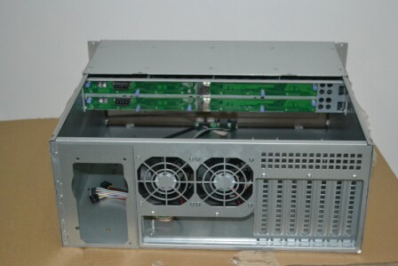 标配8个位的热插拔背板 背板有2种背板MINI的 或者 SAS SATA3一对一的 但现在只有MINI的背板