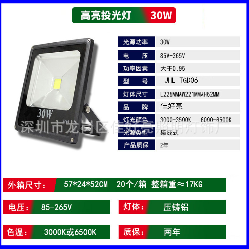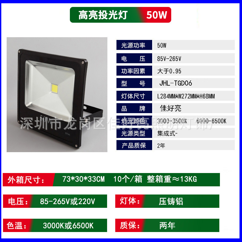 Led 홍수 빛 50W 야외 방수 홍수 빛 야외 경기장 조명 건설 현장 조명 표지판 프로젝션 라이트