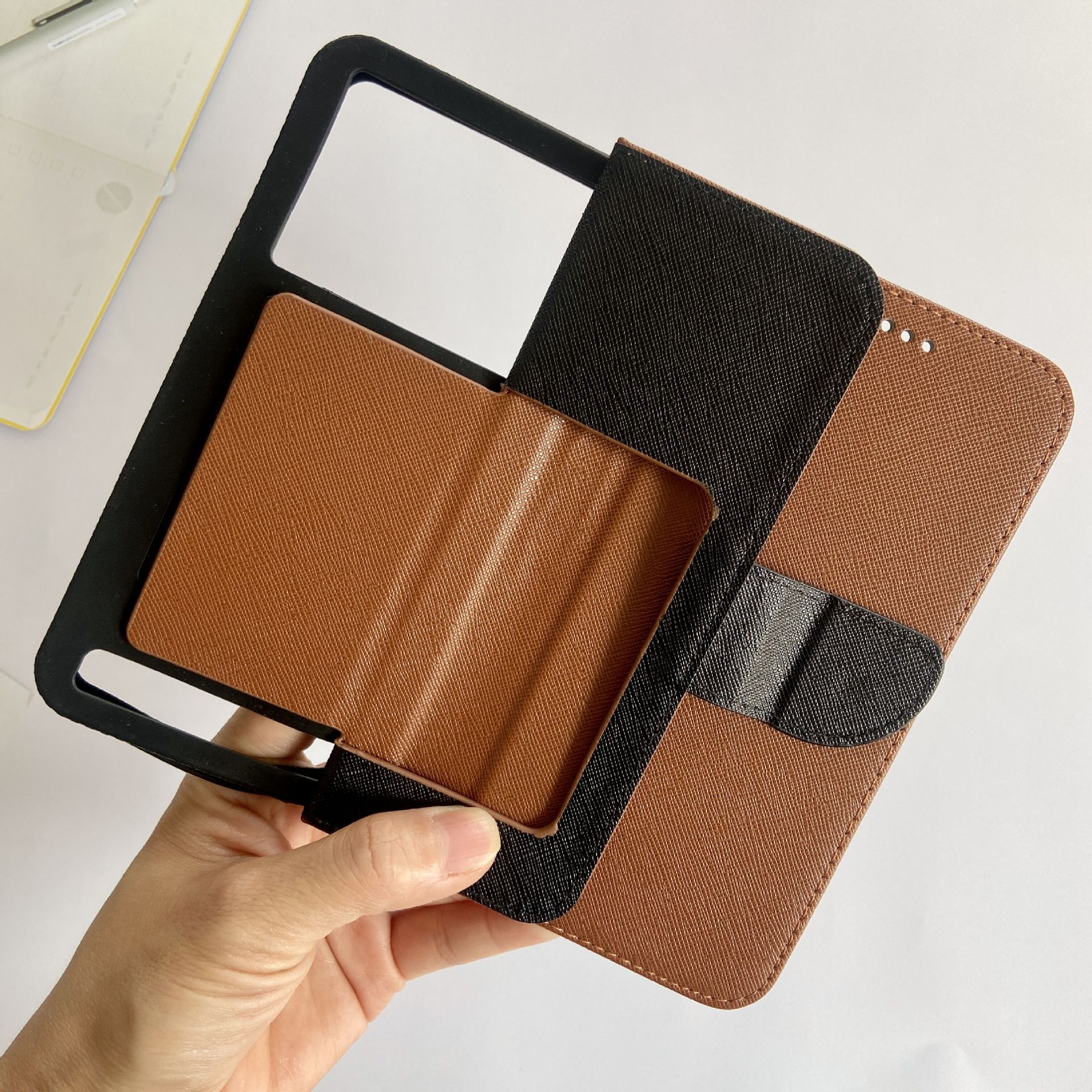 아이폰17에 적합한 만능 휴대폰 케이스, 범용 실리콘 크로스 패턴 배색 플립 커버 가죽 케이스, 신제품 재고 있음스토어 가기