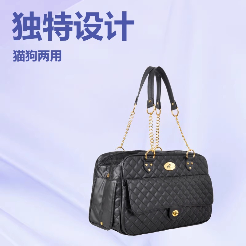 【产品名称】:实用宠物包 【产品规格】长宽高40cm*27cm*17.5cm 【产品材质】 压色PU 【产品介绍】:新款高质量宠物包,选用豹纹做产品原料,优点是不褪色、不变形、透气好、轻、易洗快干、手感软、吸湿性好。 产品设计结构从左到右可以直接拉到头,方便装体积较大点的宠物装入,小点的宠物可以半拉式装进去就OK 了。中间面板是全透气网布,这样狗狗在里面就不会闷到了。但是此透气网有一个好处外面是不容易看到狗狗在袋子里的,这样方便出行做公车,但狗狗可以轻松的观看外面的风景哦!袋子的后部有袋子方便装点其他的小东西。,即受力有耐脏!此款包可手提,可手挽,可肩挎。另喜欢的朋友欢迎前来订购