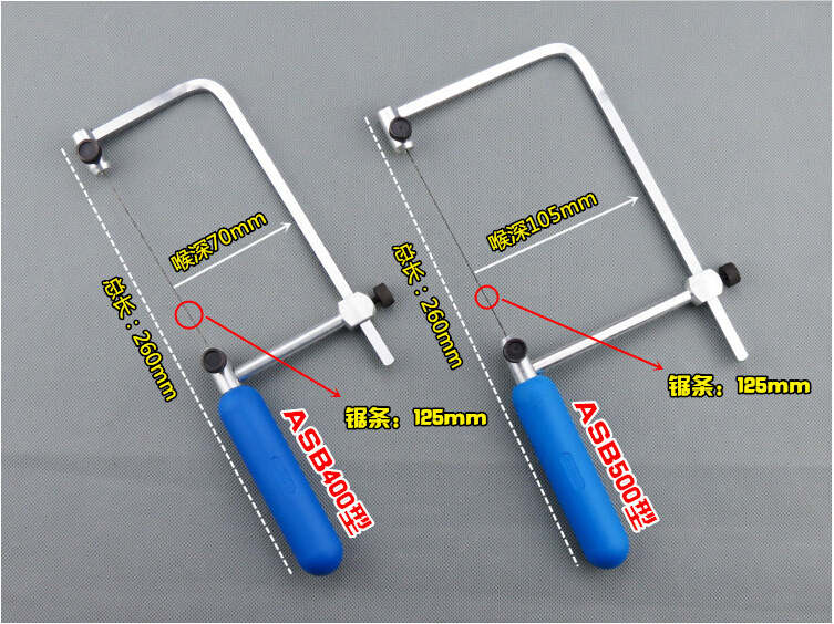 关于400型和500型的区别:掌柜解释下,两款锯的长度都是一样的,不同的是500型为加宽型的也就是宽度更加的宽,好处就是可以锯更厚的材料。使用起来400型的硬朗点,500型因为是加宽用起来会软点,都不影响操作各有千秋!!!
