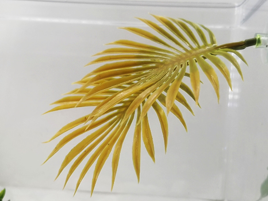 叶片色泽亮丽,质地柔软适中,在水中能起到飘逸自然的姿态,在水中的视觉呈现非常逼真,达到以假乱真的效果。