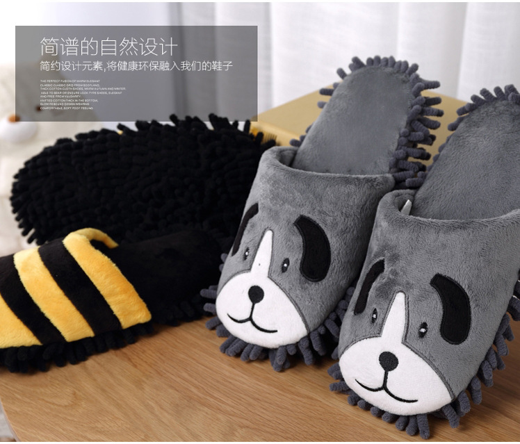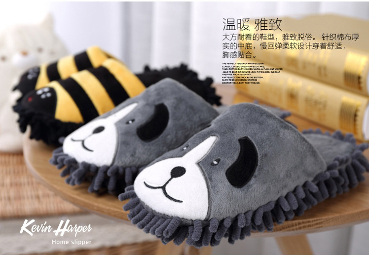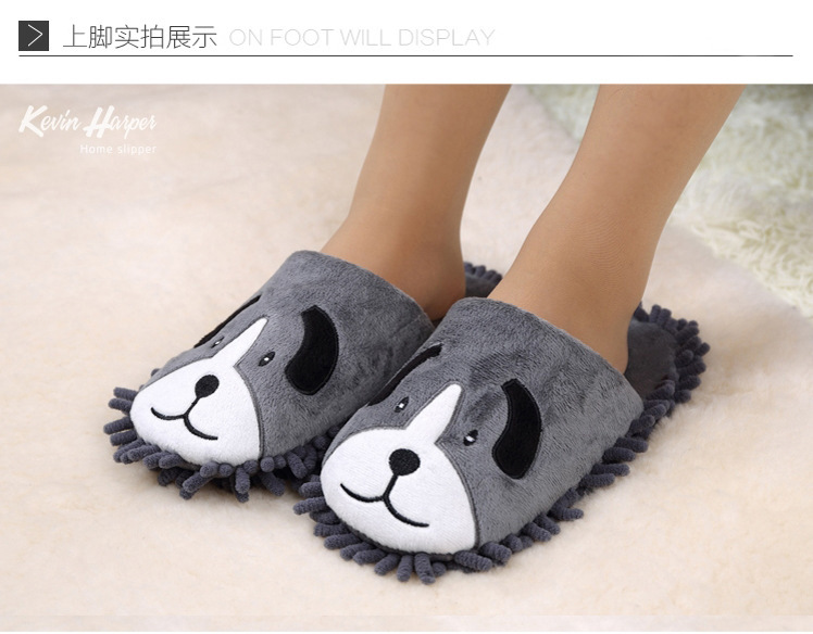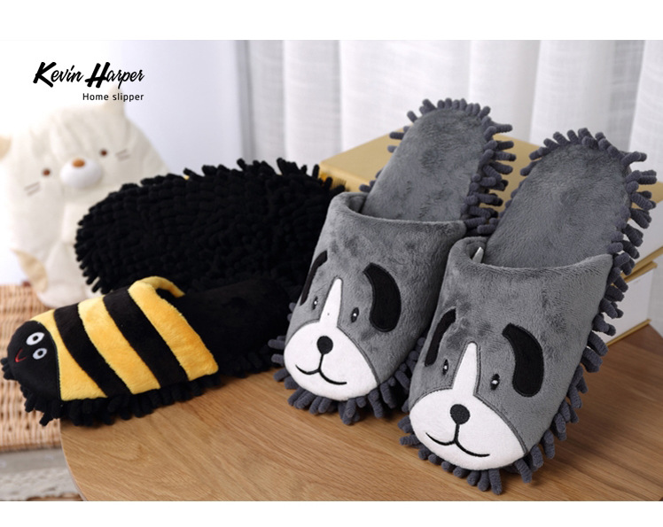 셔닐 면 슬리퍼 실내 홈 만화 동물 바닥 걸레 슬리퍼 미끄럼 방지 걸레 보푸라기 면 슬리퍼