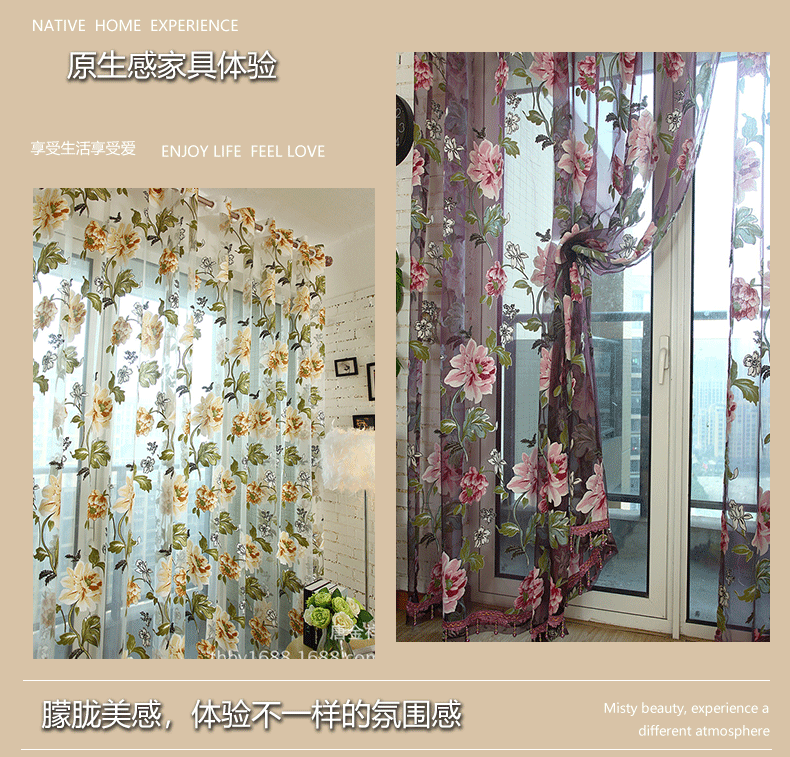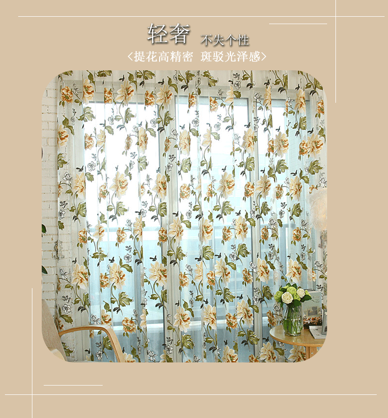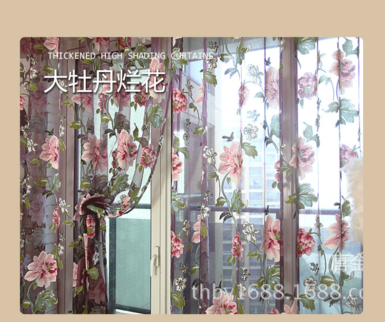 고급스러운 대형 모란꽃 무늬 침실 거실용 커튼, 플로팅 윈도우 거즈 커튼, TEMU 신상품, 해외 직배송