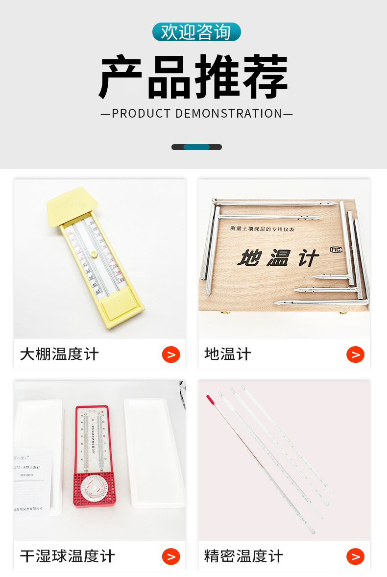干湿温度计:干湿温度计系列产品,是工农业生产和科学实验测量空气相对湿度的必备工具。在粮食仓储,大棚养植、蚕桑丝绸、烟草收烘、气象观察、食品加工等场所均广泛应用。