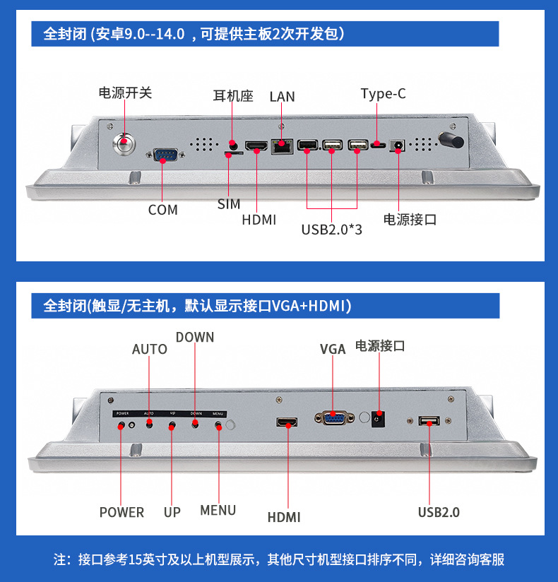 • 15inch 정전식 스크린(전면 스위치 + USB)