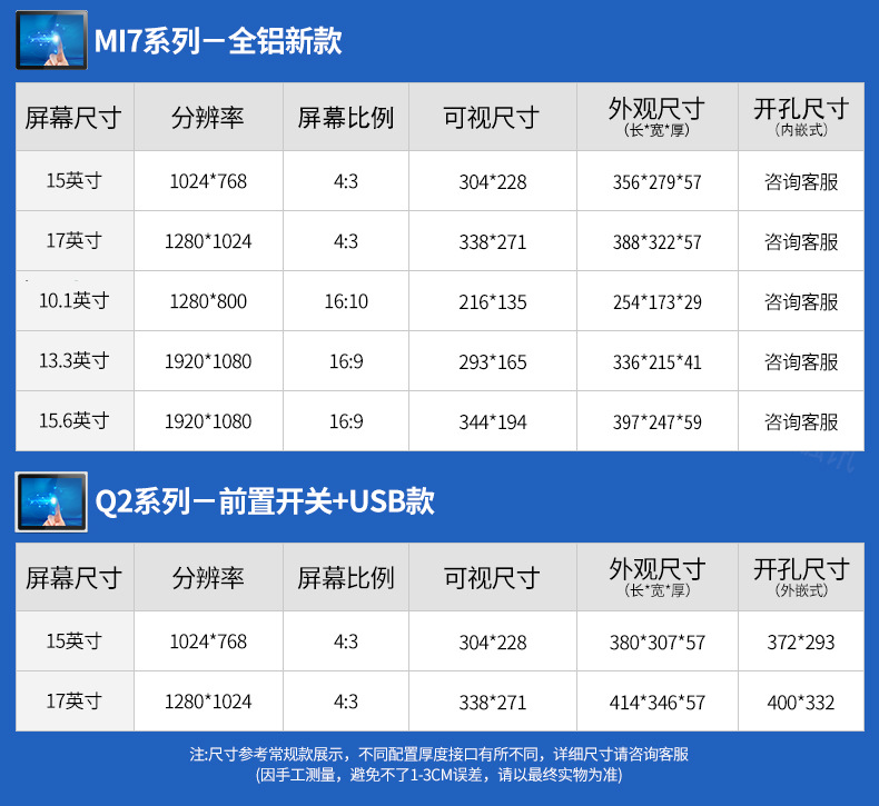 • 17inch 정전식 스크린(전면 스위치 + USB)