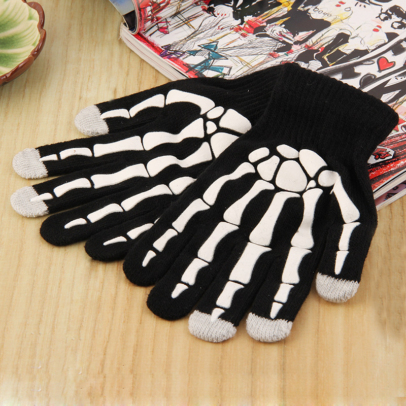 터치 스크린 크로스 보더 빛나는 장갑 가을과 겨울 유럽과 미국 패션 할로윈 니트 울 오프셋 해골 발톱