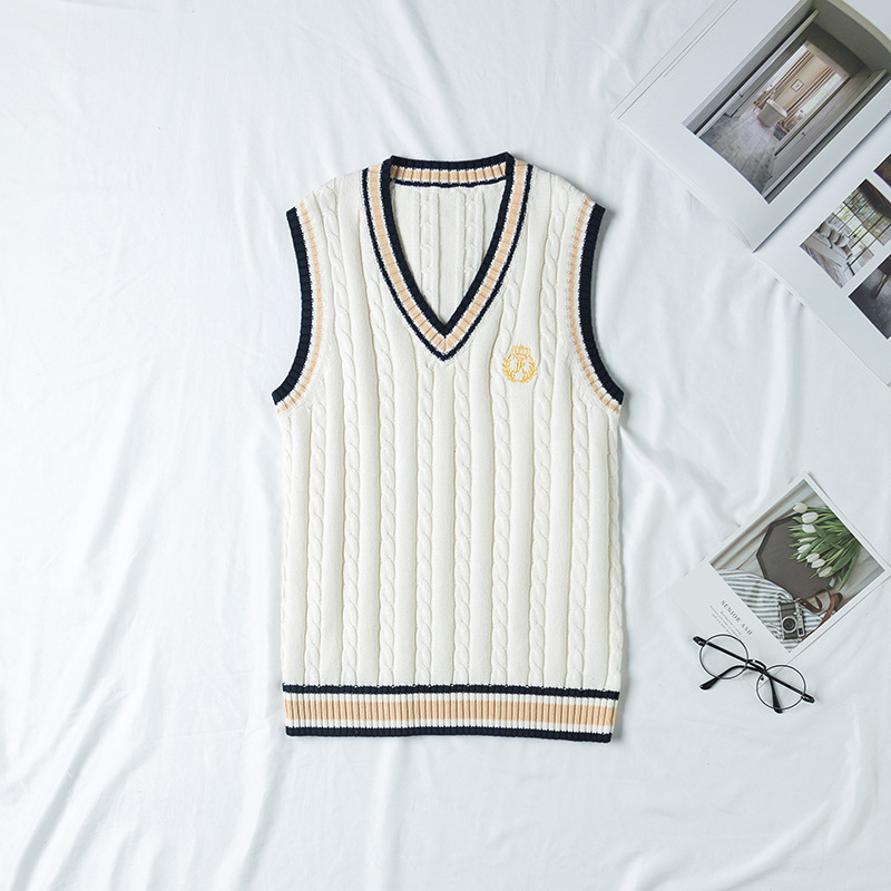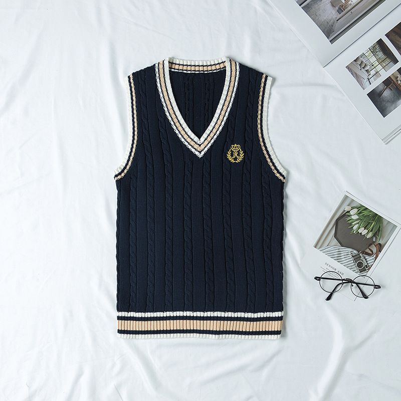재고 대학 영국 스타일 JK 유니폼 자수 V-넥 소녀 조끼 학생 교복 스웨터 조끼 니트 셔츠