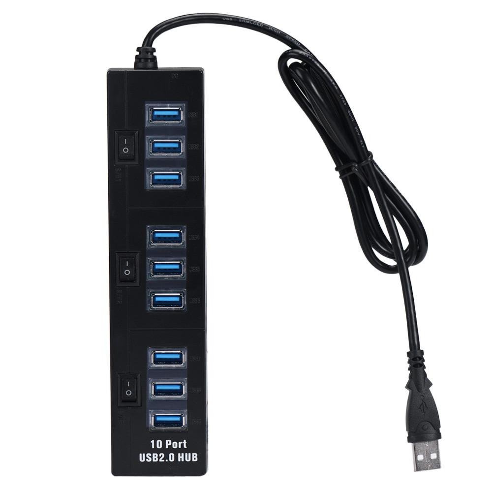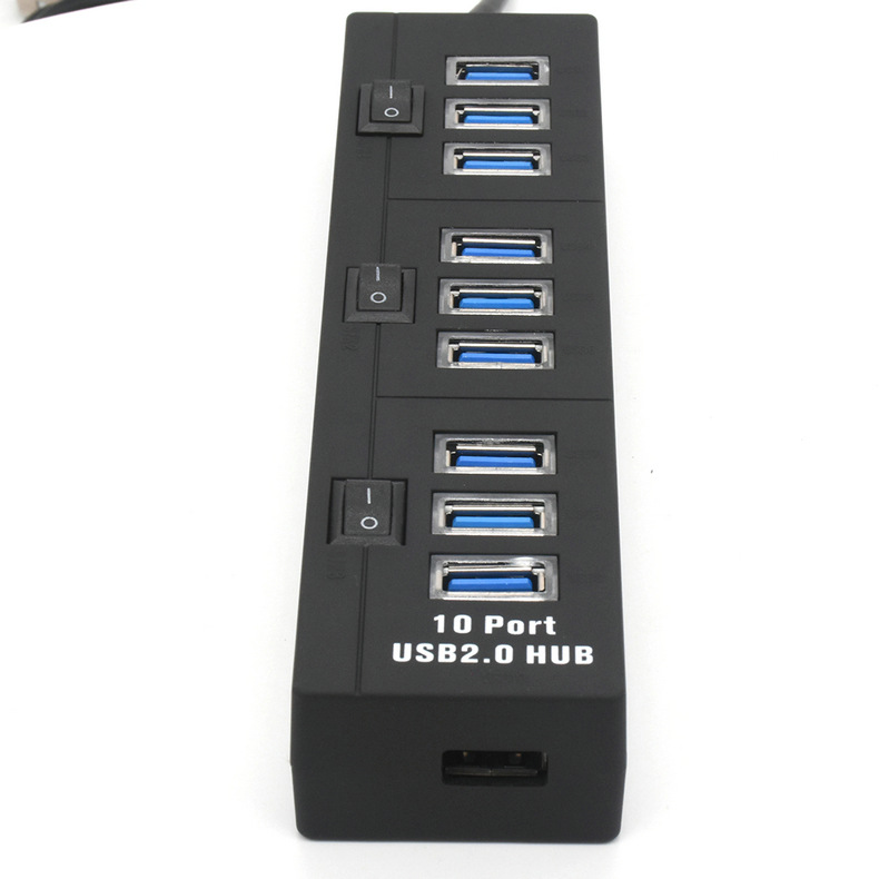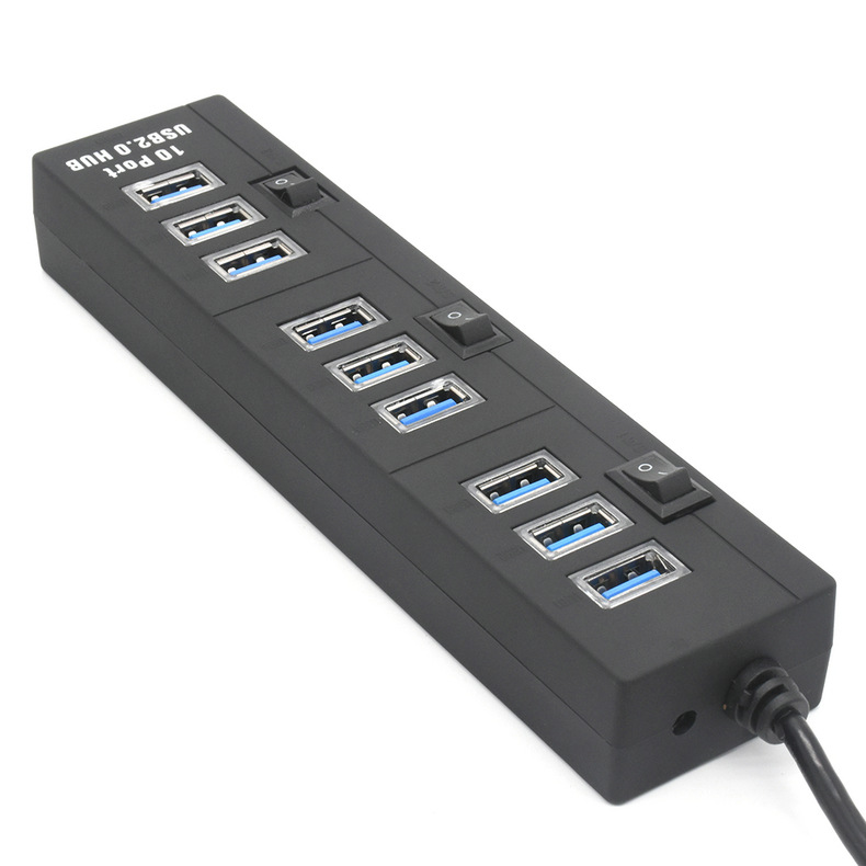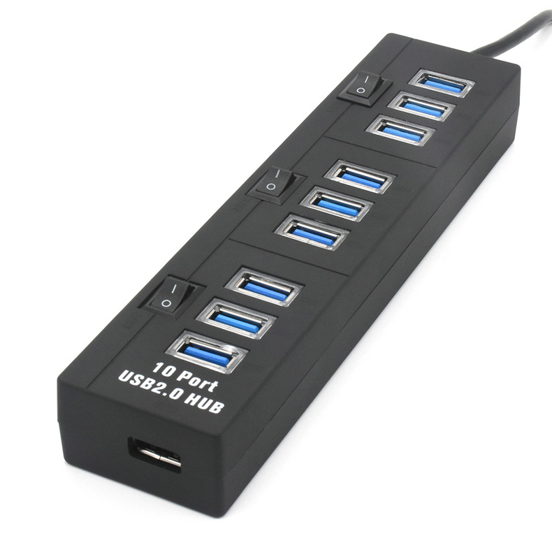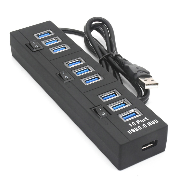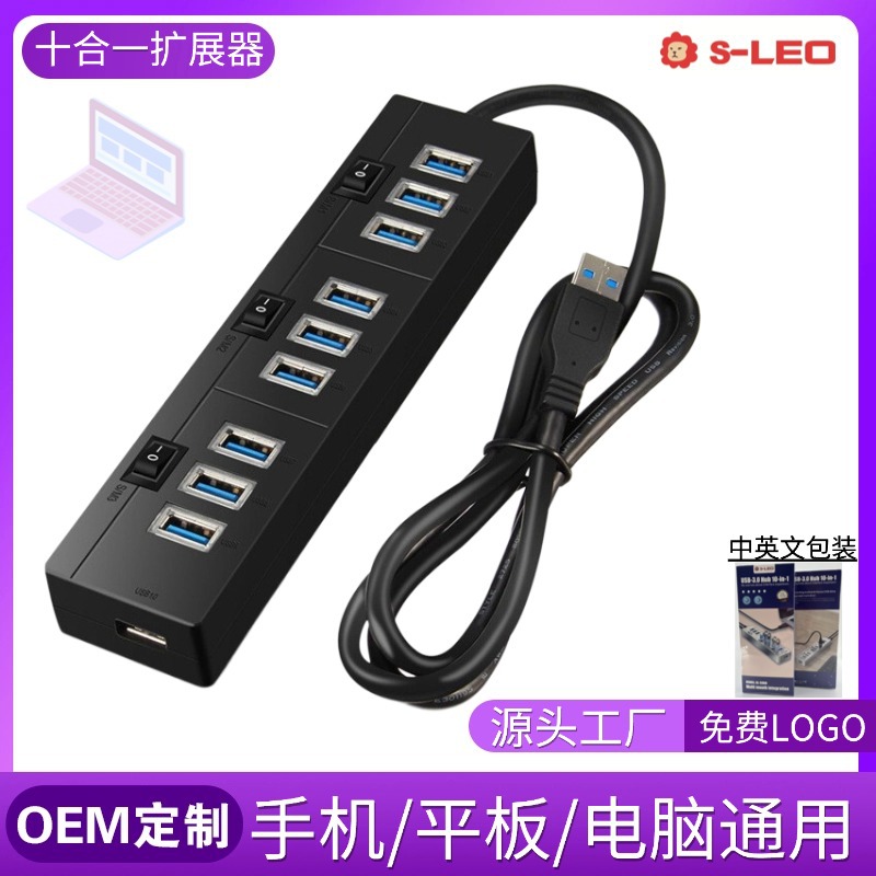 电脑多接口usb扩展器3.0分集线器hub高速扩展一拖十口带开关拓展
