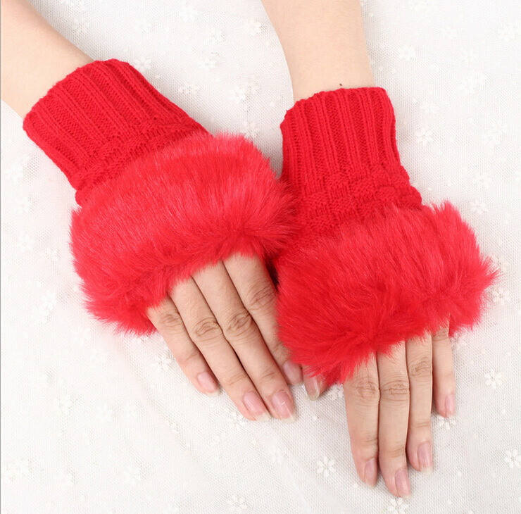 가을과 겨울 모조 토끼 모피 장갑의 한국어 버전 패션 울 니트 따뜻한 반 손가락 장갑 제조 업체 도매 T001스토어 가기