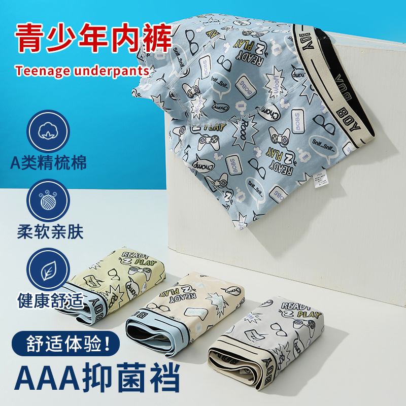 청소년 남아 속옷 발달기 12-16세 중학생 및 초등학생 사각팬티 A급 면 남아 빨간색 속옷