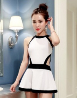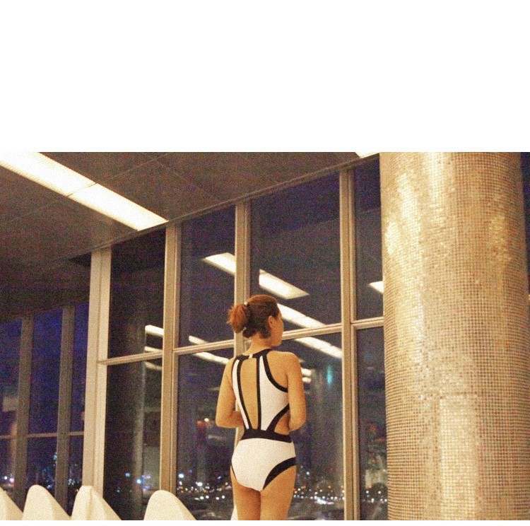 공장 직접 수영복 여성 섹시 슬림 보수적 인 등이없는 비키니 흑백 온천 원피스 수영복 여성스토어 가기