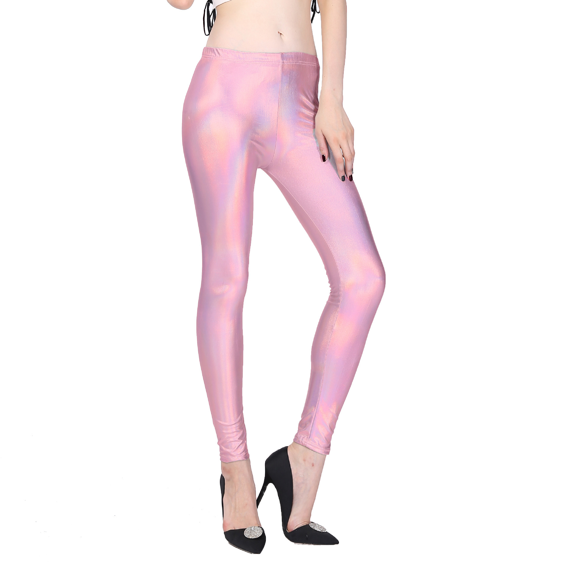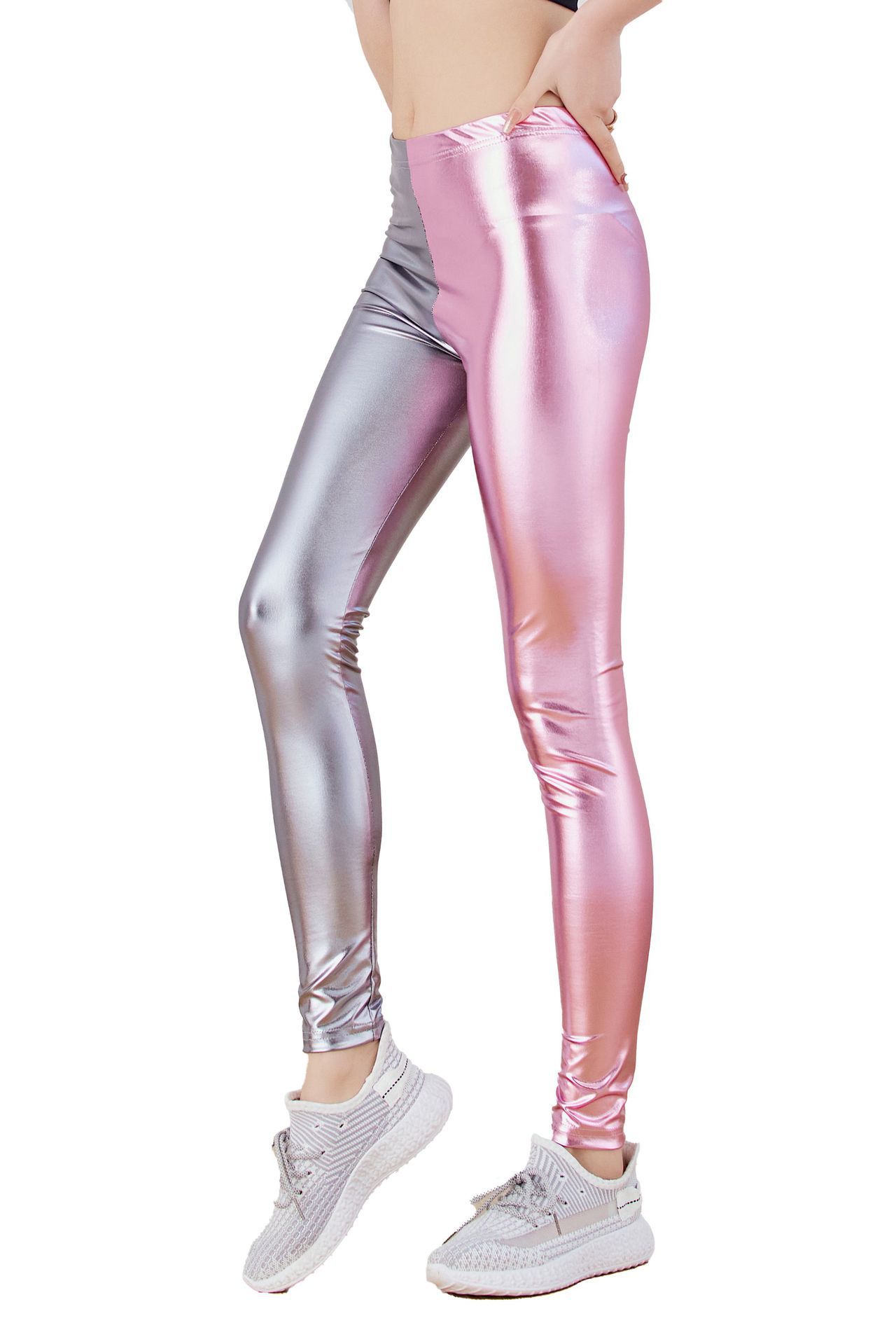 아마존 새로운 캔디 컬러 밝은 가죽 메탈릭 인조 가죽 바지 가을 여성의 자른 레깅스스토어 가기
