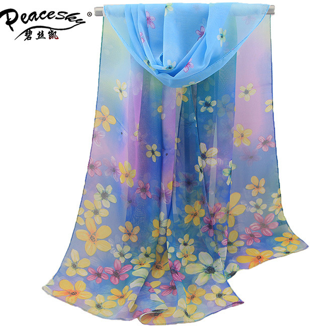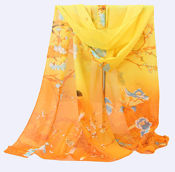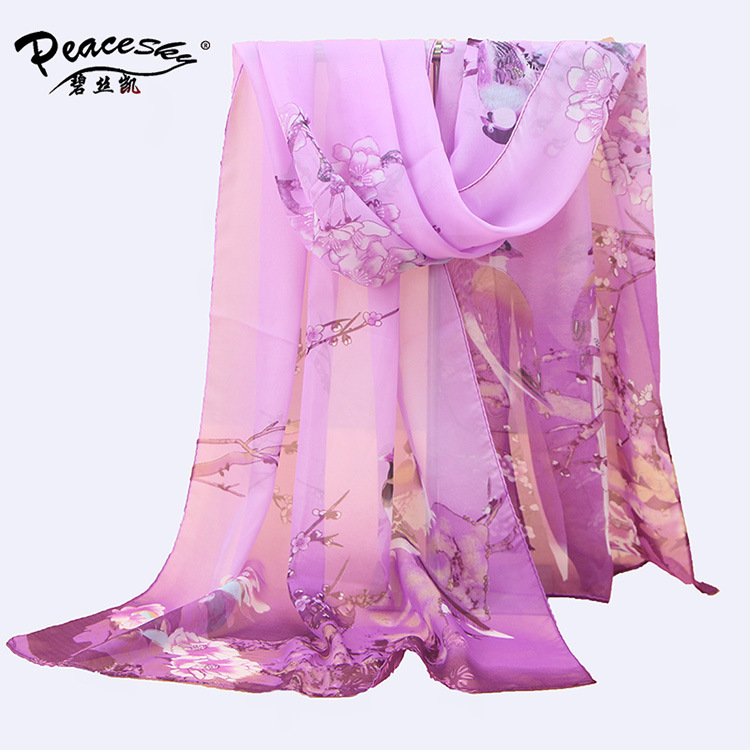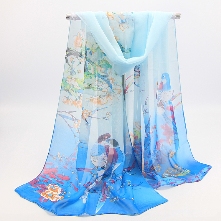 2020 봄과 여름 새로운 실크 스카프 까치 봄 그림 숙녀 쉬폰 긴 실크 스카프 이우 작은 거즈 스카프 도매