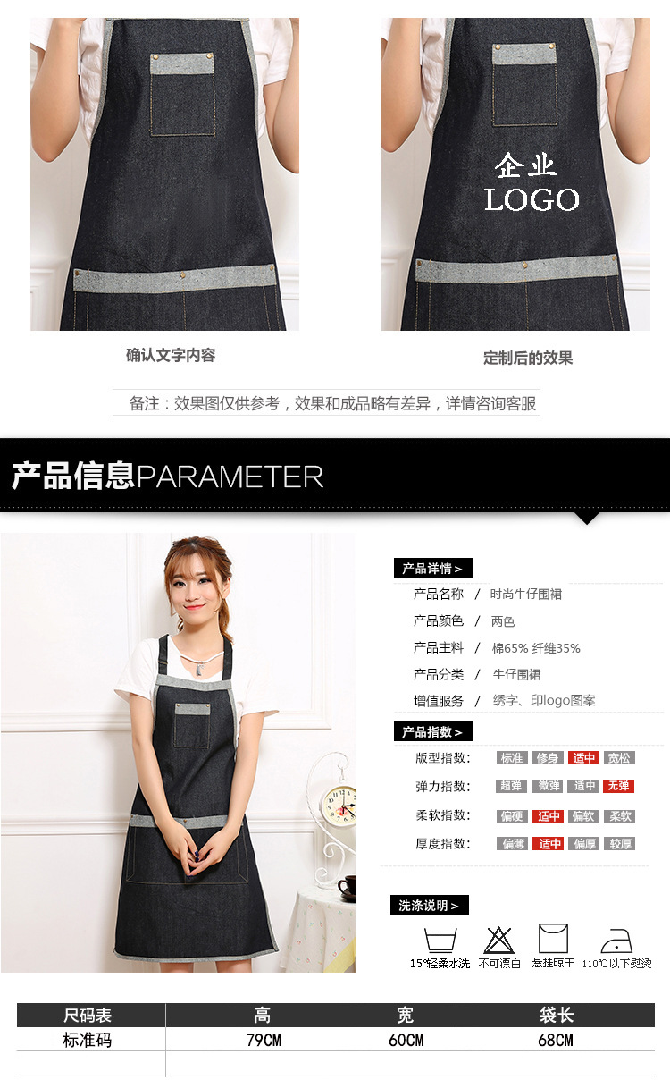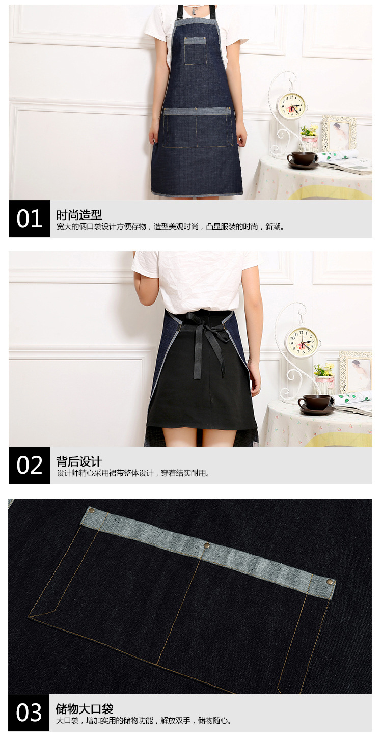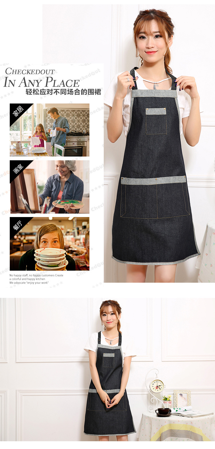 여름 간단한 데님 앞치마 사용자 정의 목 교수형 작업복 노동 보호 참석자 광고 앞치마 사용자 정의 로고스토어 가기