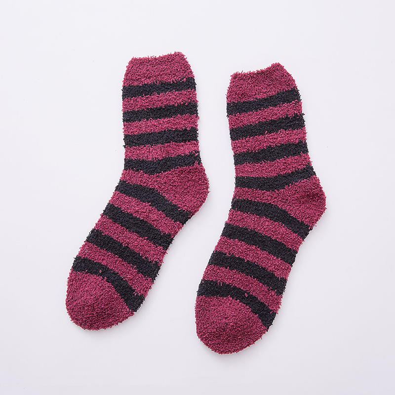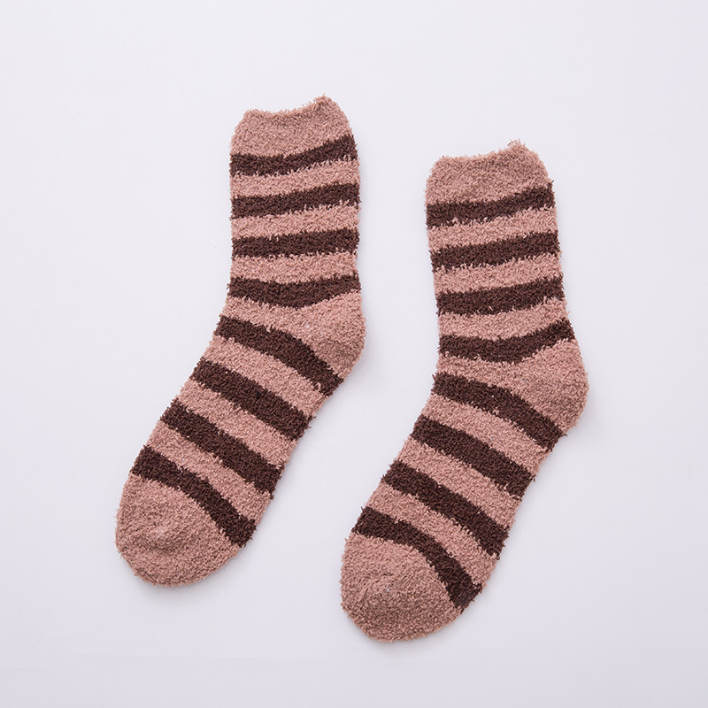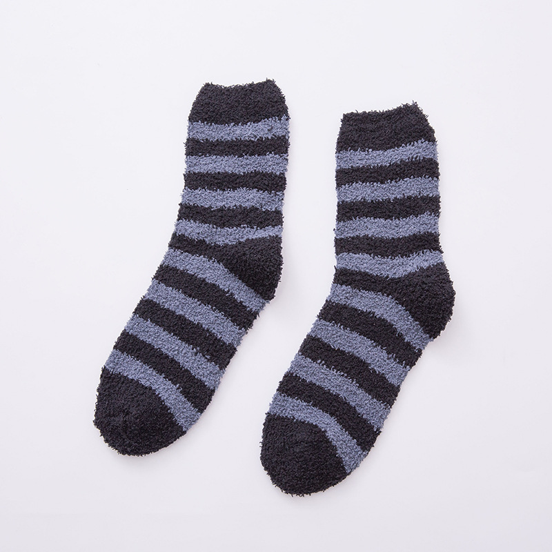 산호 벨벳 양말, 반벨벳 남성 양말, 두꺼운 보온 남성용 탈취 스트라이프 타월 양말, 가정용 수면 양말, 부드러운