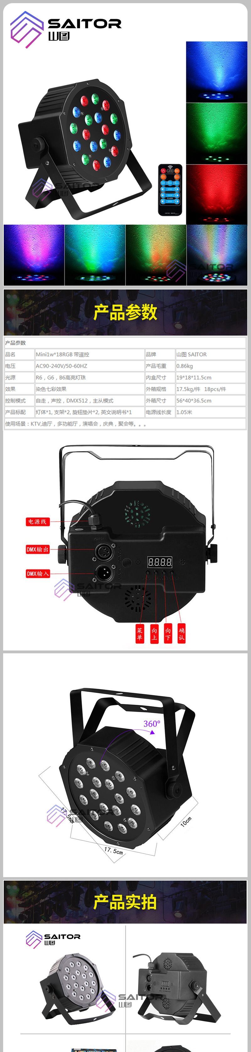 특별 판매 미니 18 패들 램프 RGB 플라스틱 벨트 리모콘 도매 바 웨딩 특별 무대 조명 장비