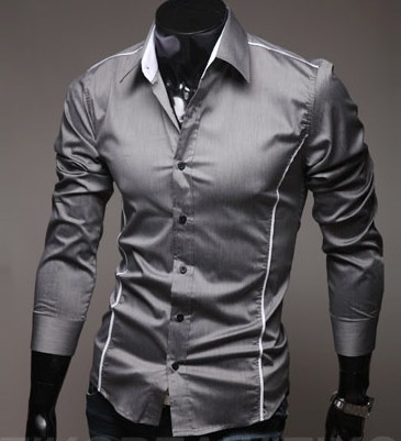 15速卖通批发男装长袖衬衫 时尚修身个性镶边休闲衬衣5092