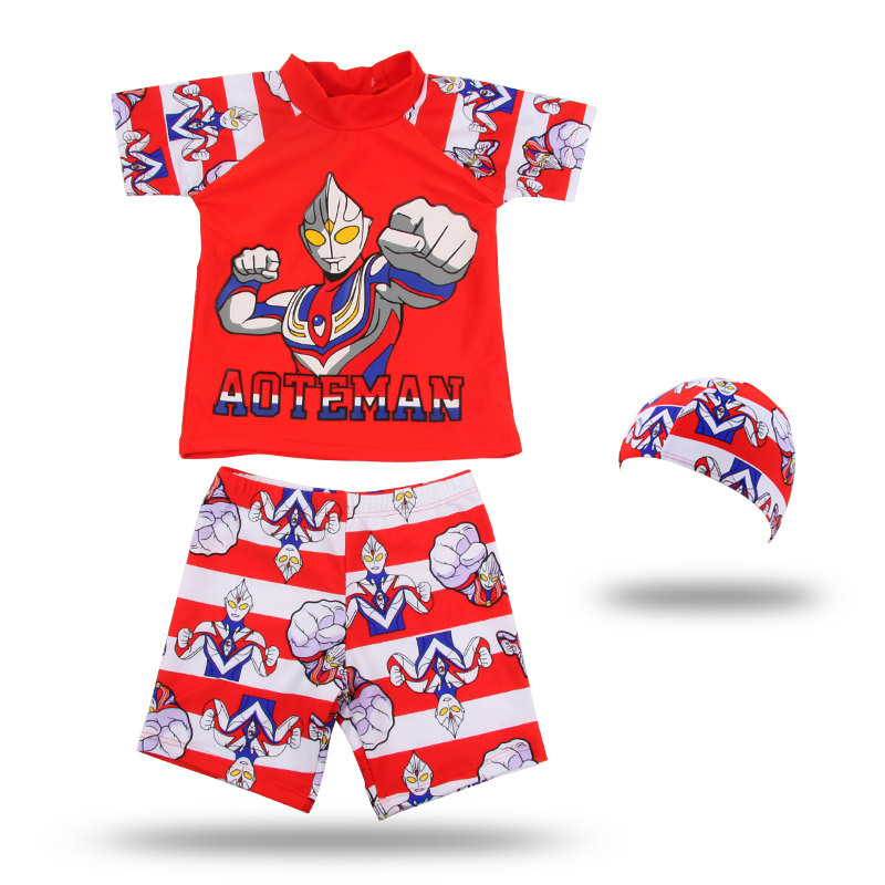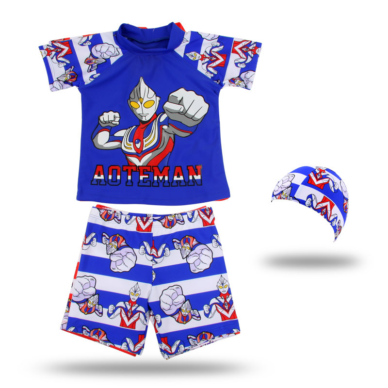 Sundais 소년을위한 새로운 스타일 수영복 분할 만화 모자 소년을위한 반 소매 분할 복서 수영복스토어 가기