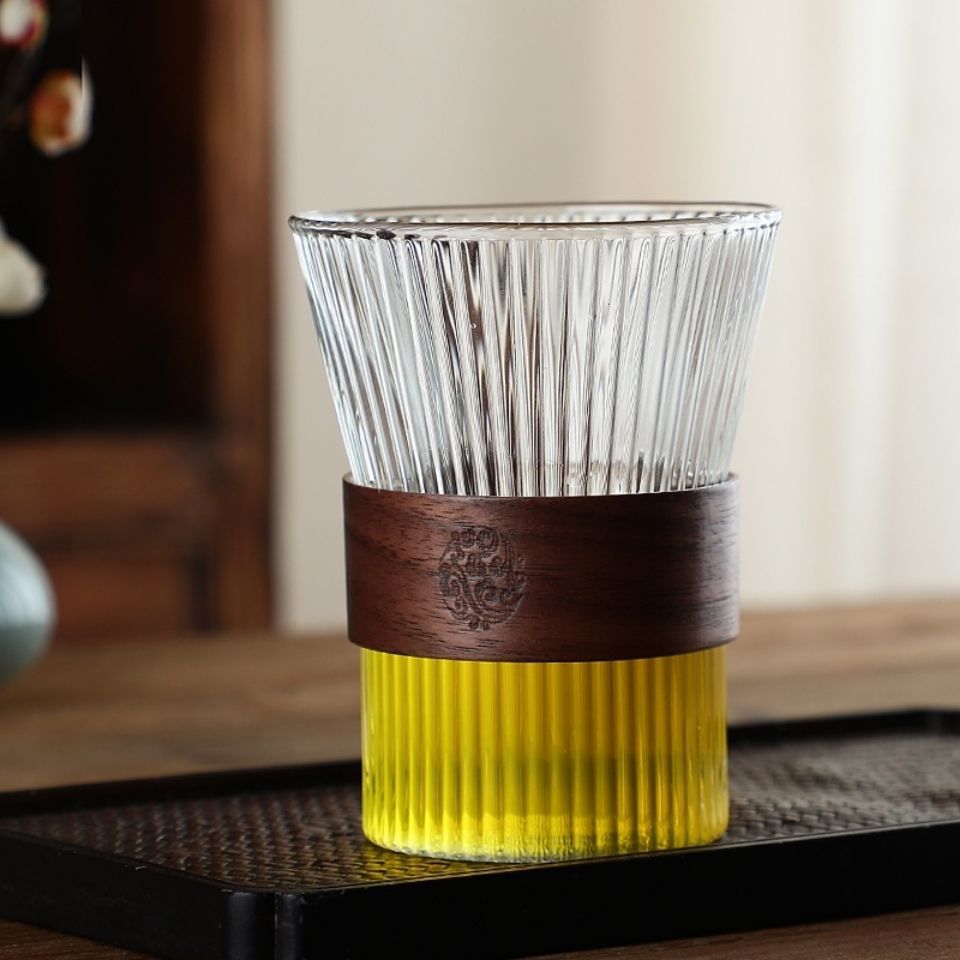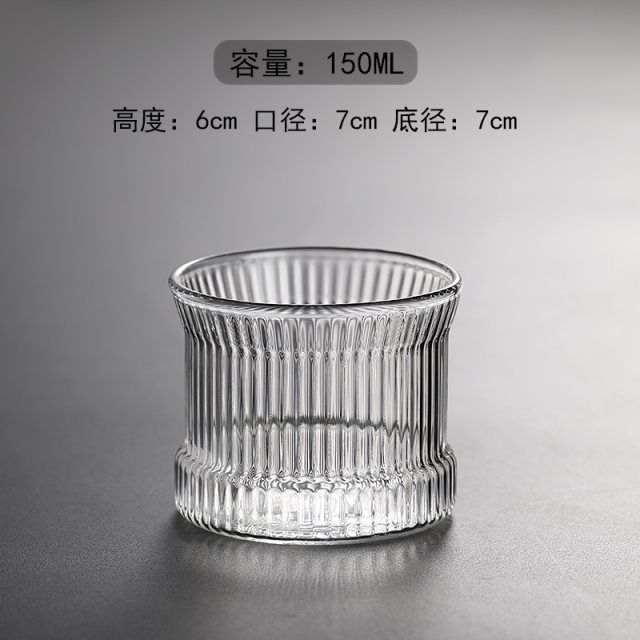 두꺼운 세로 무늬 일본식 차 세트 유리 찻잔 방열 물컵 분리형 유리컵 가정용 차컵 주인용 컵