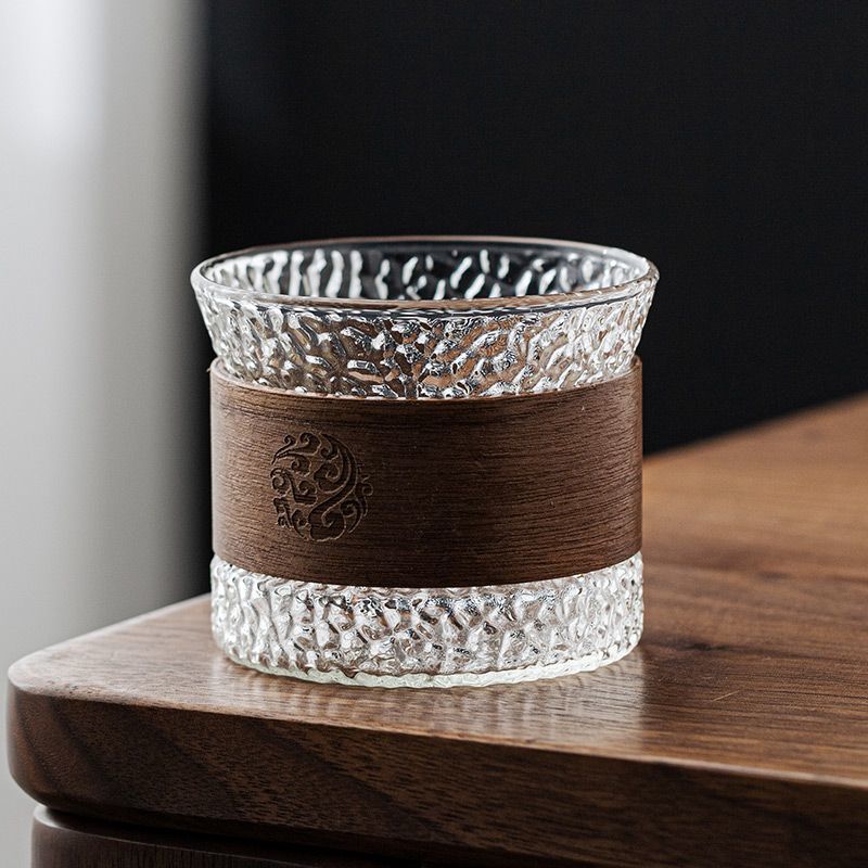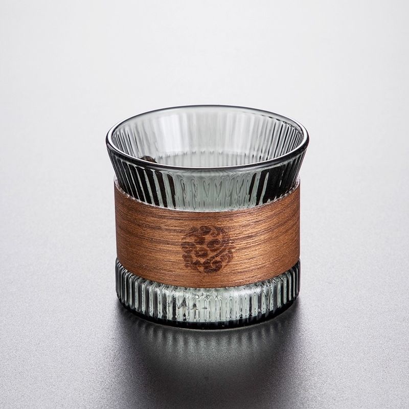 두꺼운 세로 무늬 일본식 차 세트 유리 찻잔 방열 물컵 분리형 유리컵 가정용 차컵 주인용 컵스토어 가기