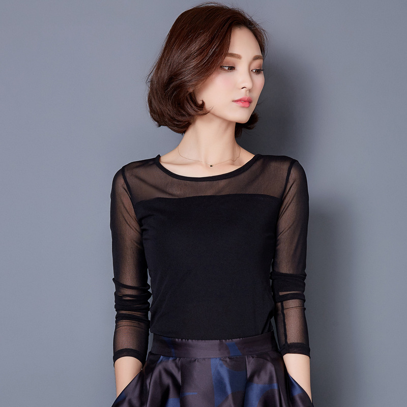 하이넥 얇은 망사 이너웨어 2026 신상 봄 가을 다용도 빅사이즈 슬림핏 긴팔 티셔츠 여성용스토어 가기