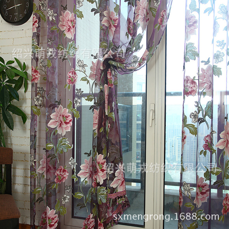 국경 간 유럽풍 모란무늬 창문 스크린 커튼, 투광성 침실 커튼, 도매, 대외 무역, 아마존, 알리익스프레스
