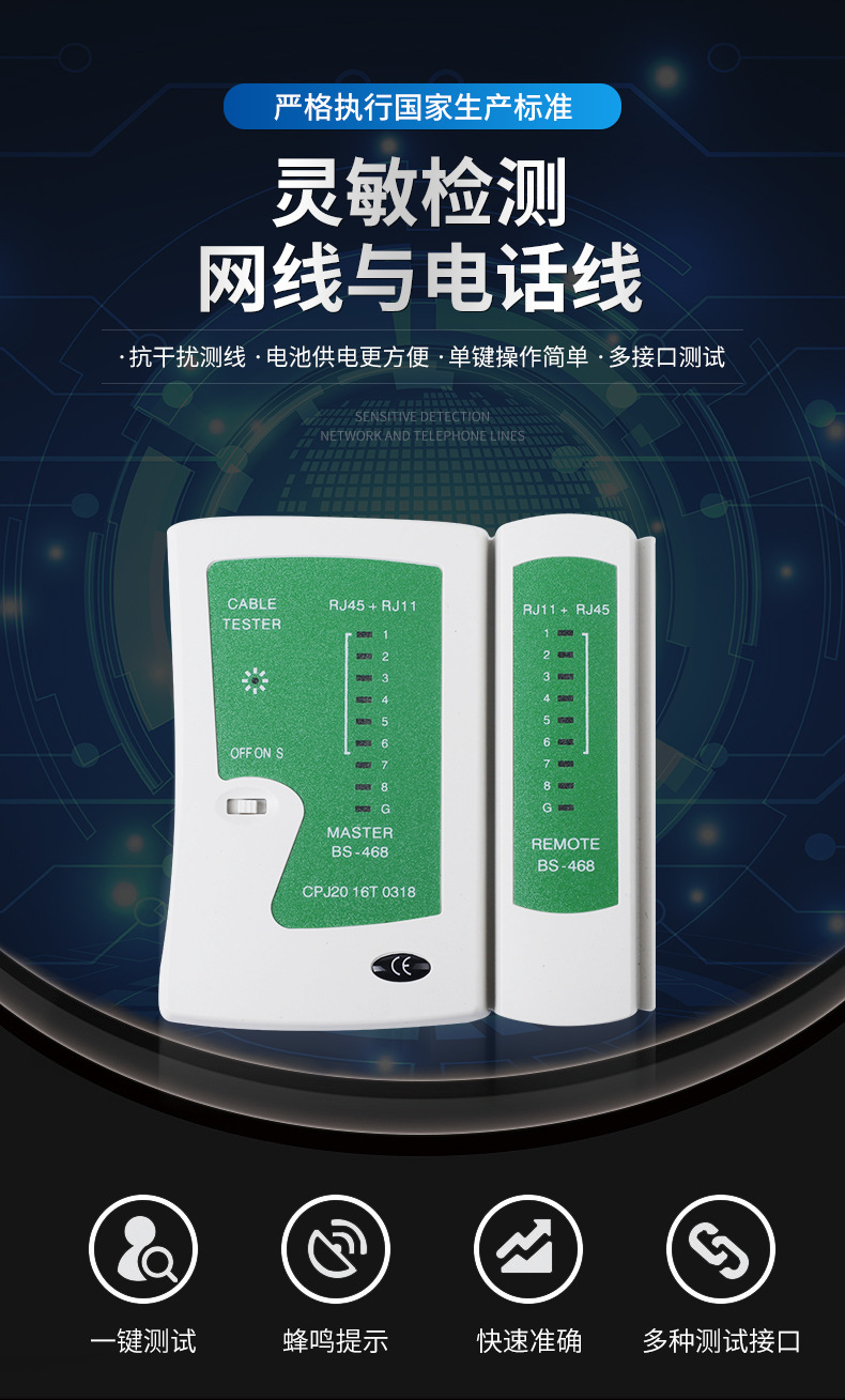 468 네트워크 테스트 도구 다목적 케이블 테스트 가정용 장비 RJ45 RJ11 네트워크 케이블 테스터 케이블 테스트기