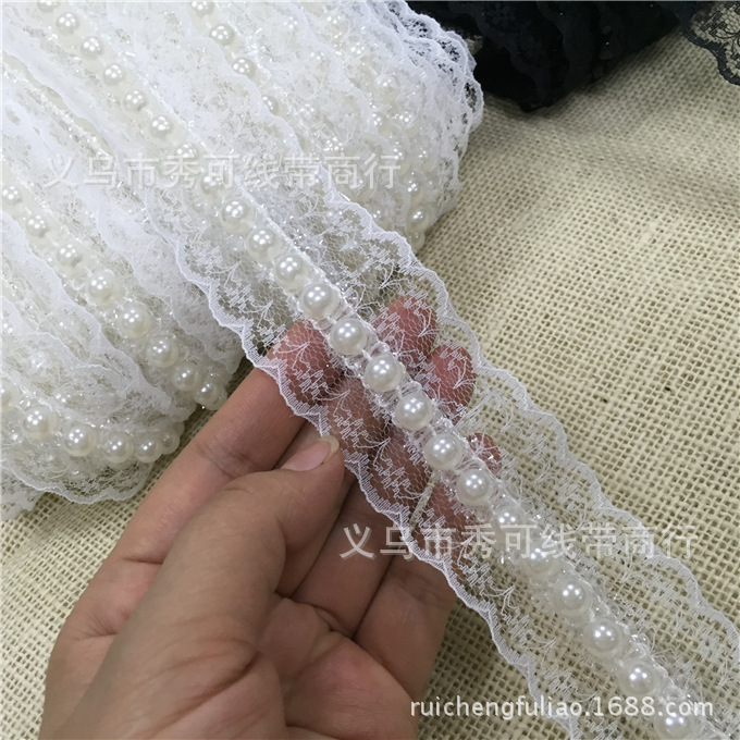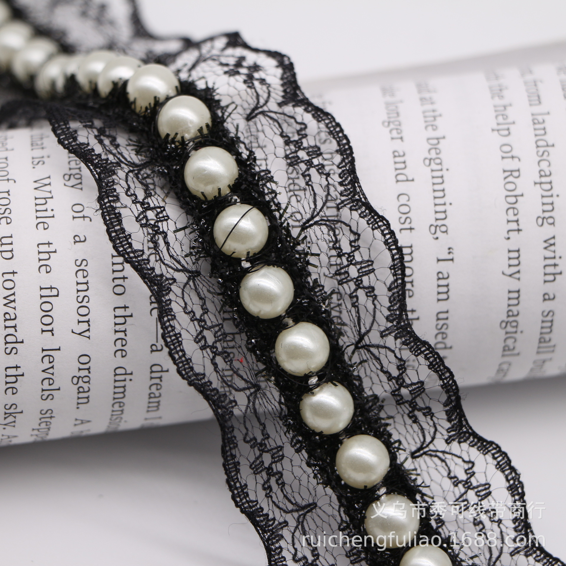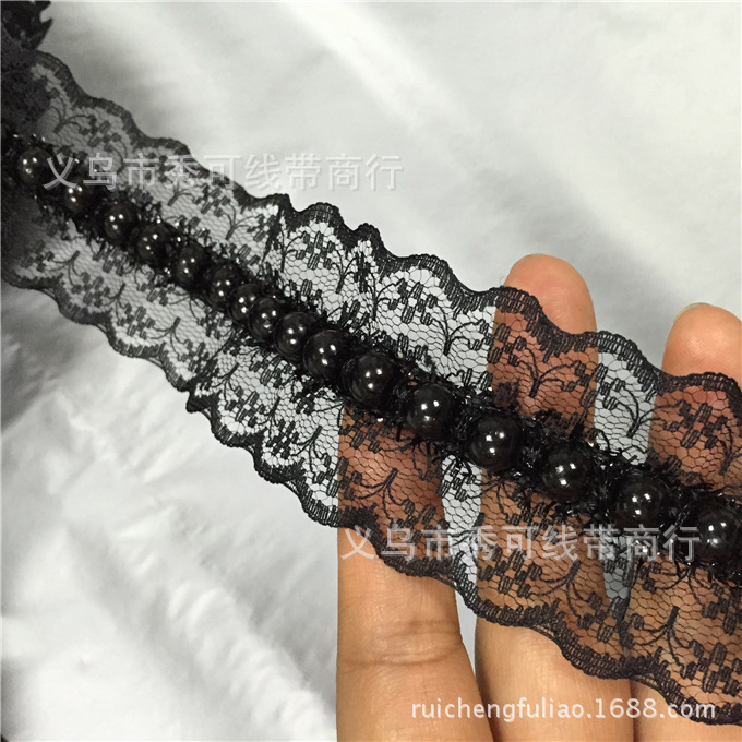 4.2CM 优质黑白色蕾丝花边带串珠 蕾丝花边辅料 窗帘立体花边辅料