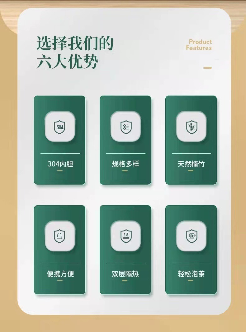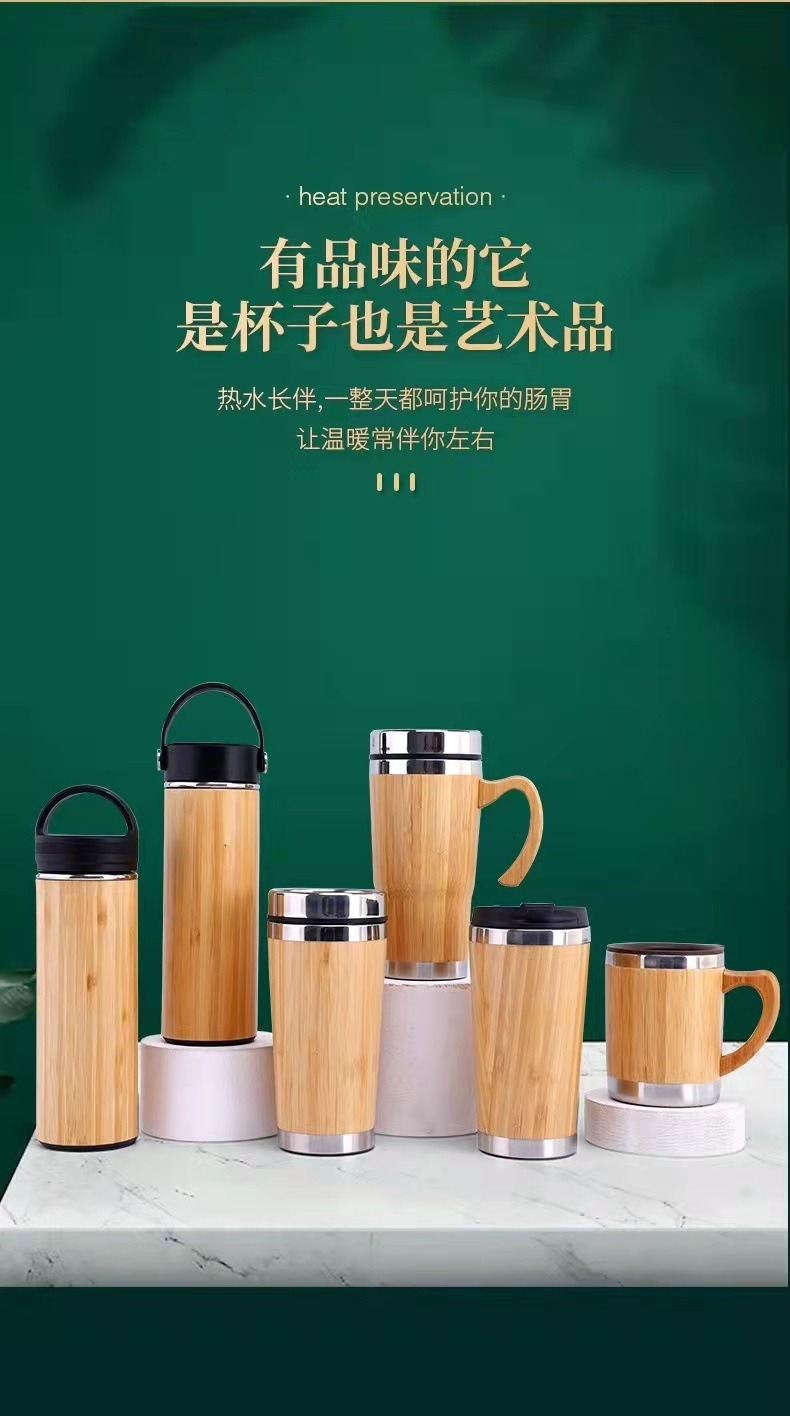 • 스테인레스 스틸 핸들러 대나무 커버 컵