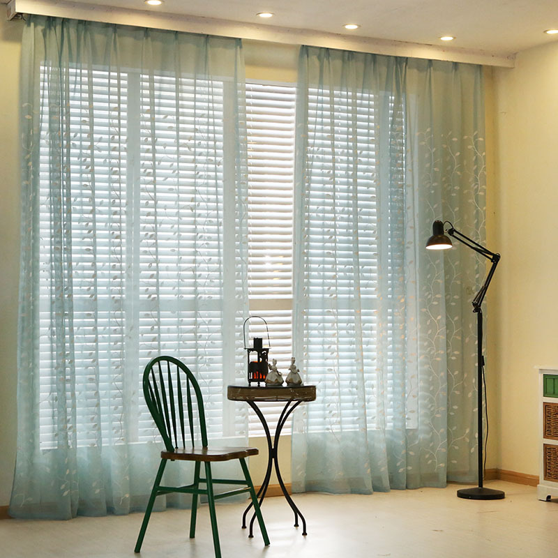 현대 간단한 면사 수 놓은 등나무 잎 스크린 커튼 화이트 윈도우 스크린 2 색 옵션 거실 침실 특별 도매스토어 가기