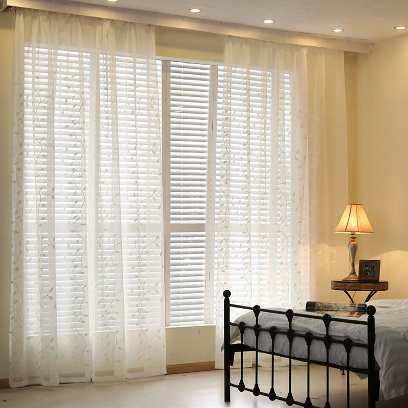 현대 간단한 면사 수 놓은 등나무 잎 스크린 커튼 화이트 윈도우 스크린 2 색 옵션 거실 침실 특별 도매