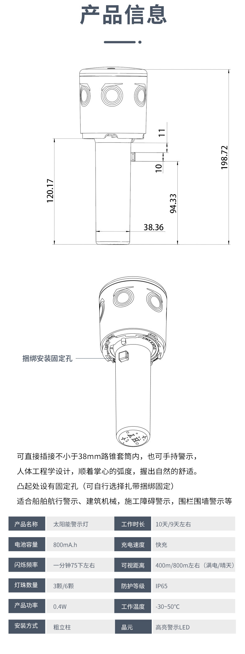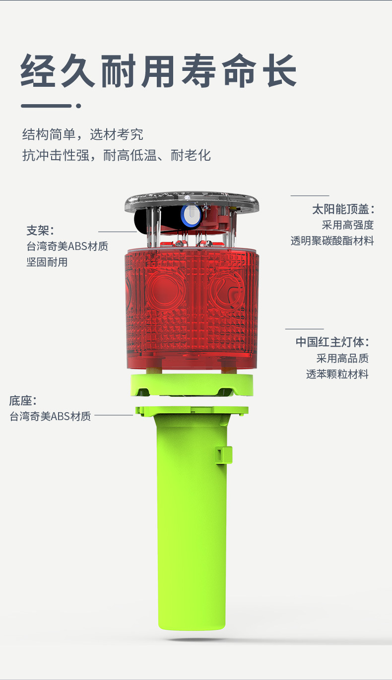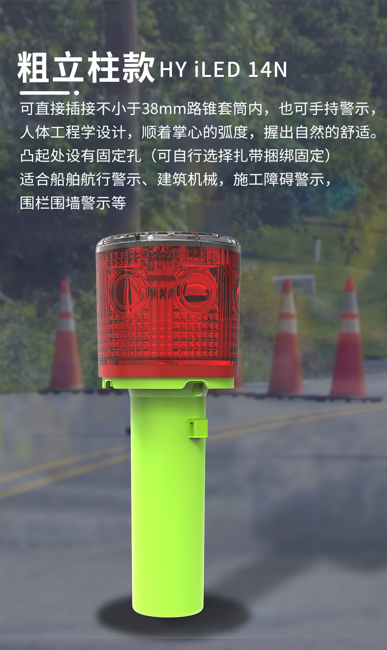 태양광 경고 스트로브 라이트, 두꺼운 기둥형 도로 표지대, 휴대용 안전 신호등, 야간 공사 도로 차단용 점멸등