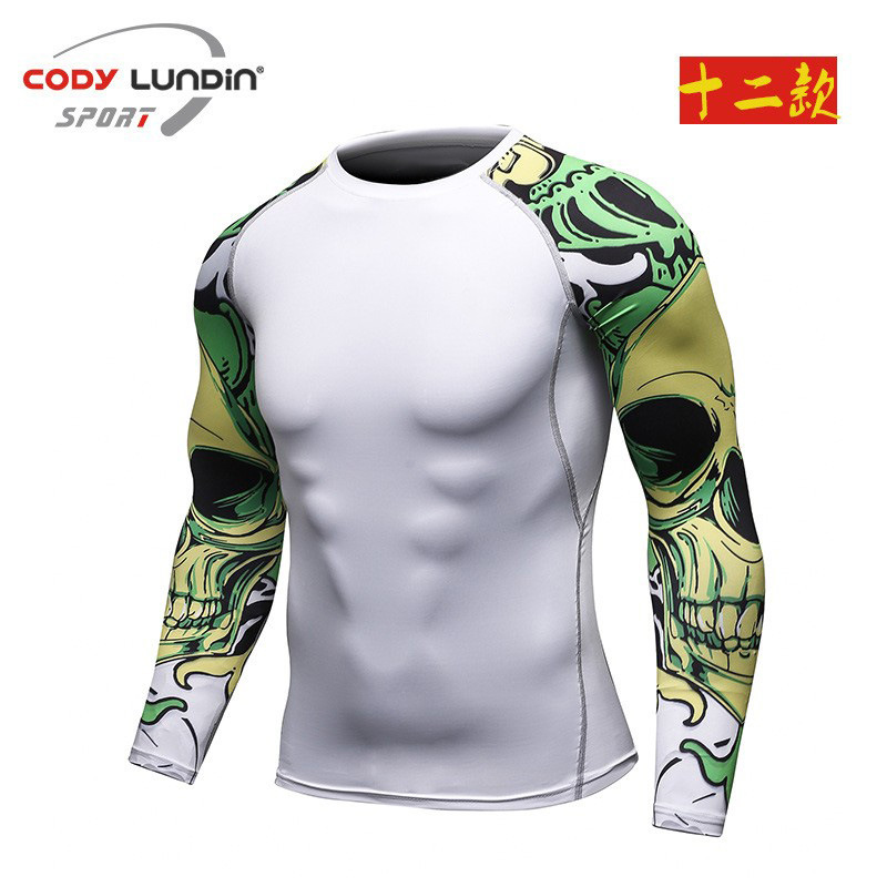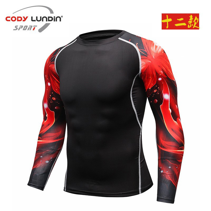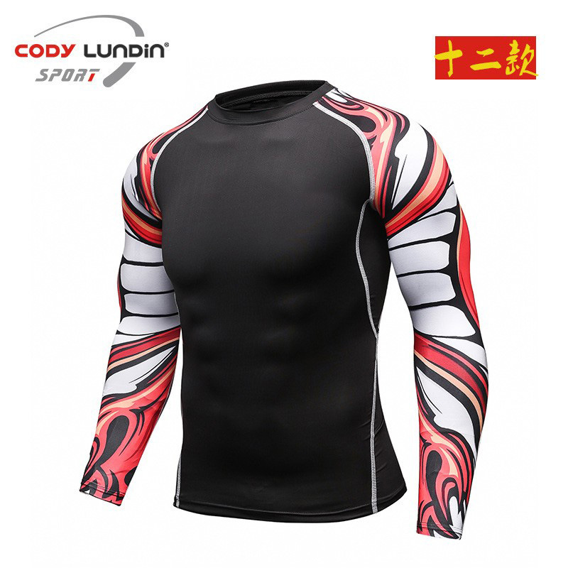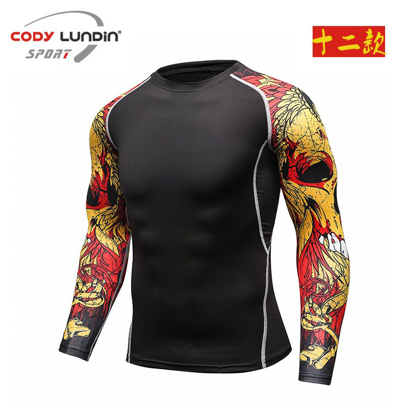 도매 요가 휘트니스 세트 프로 긴 소매 스타킹 스포츠 남자 빠른 건조 탄성 실행 승무원 목 티셔츠 A016