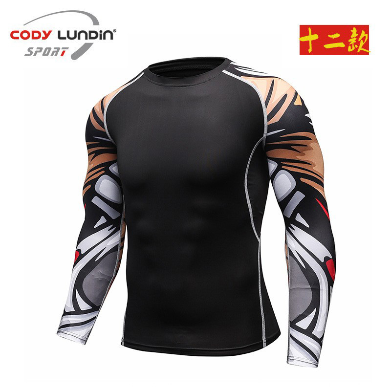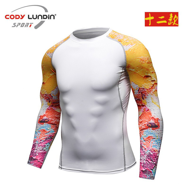 도매 요가 휘트니스 세트 프로 긴 소매 스타킹 스포츠 남자 빠른 건조 탄성 실행 승무원 목 티셔츠 A016스토어 가기