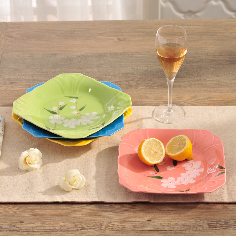 [개인 사각 스낵 플레이트] 창조적인 일본식 도자기 접시 호텔 가정용 실용적인 과일 접시 식기 커스터마이즈