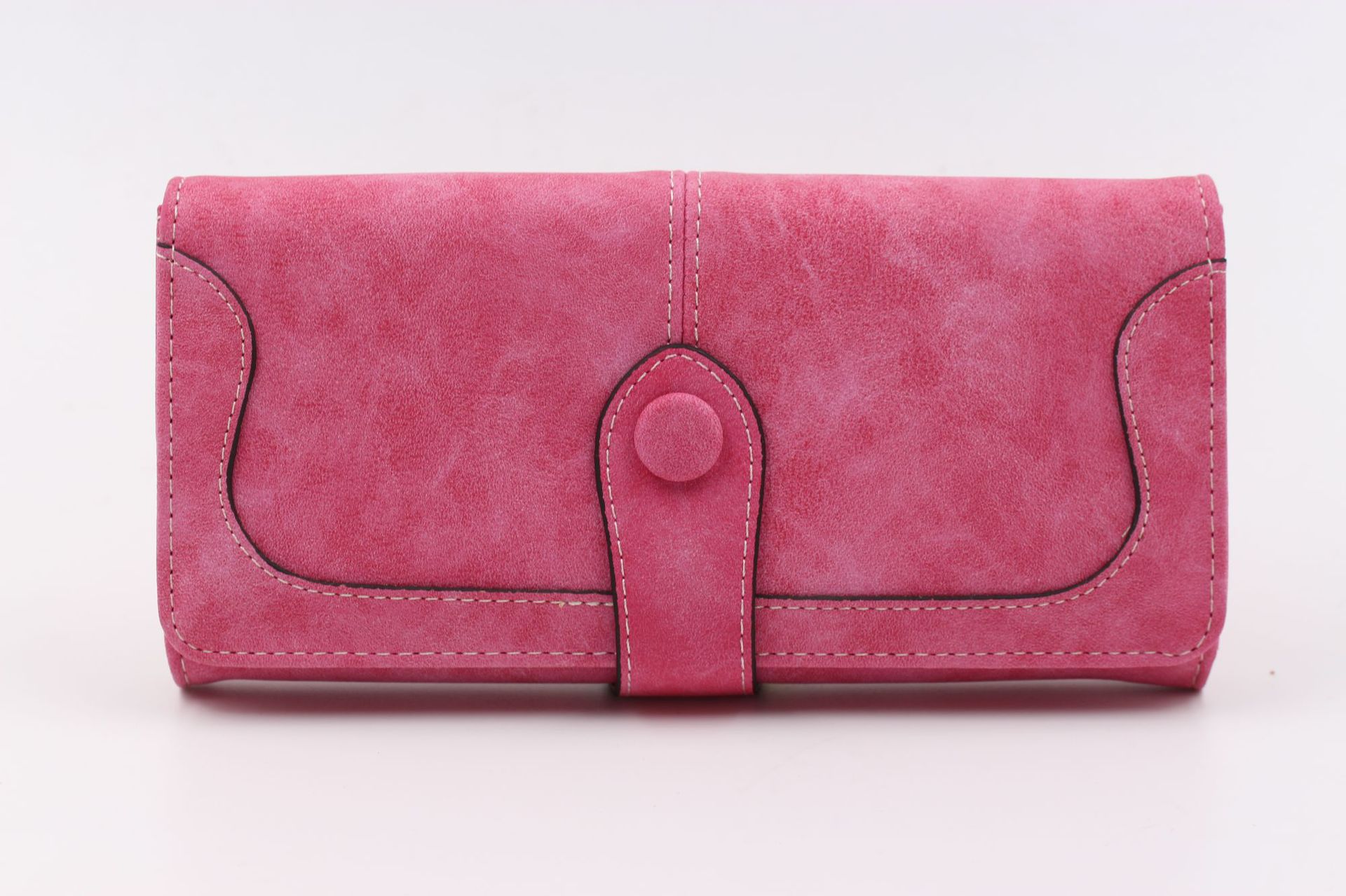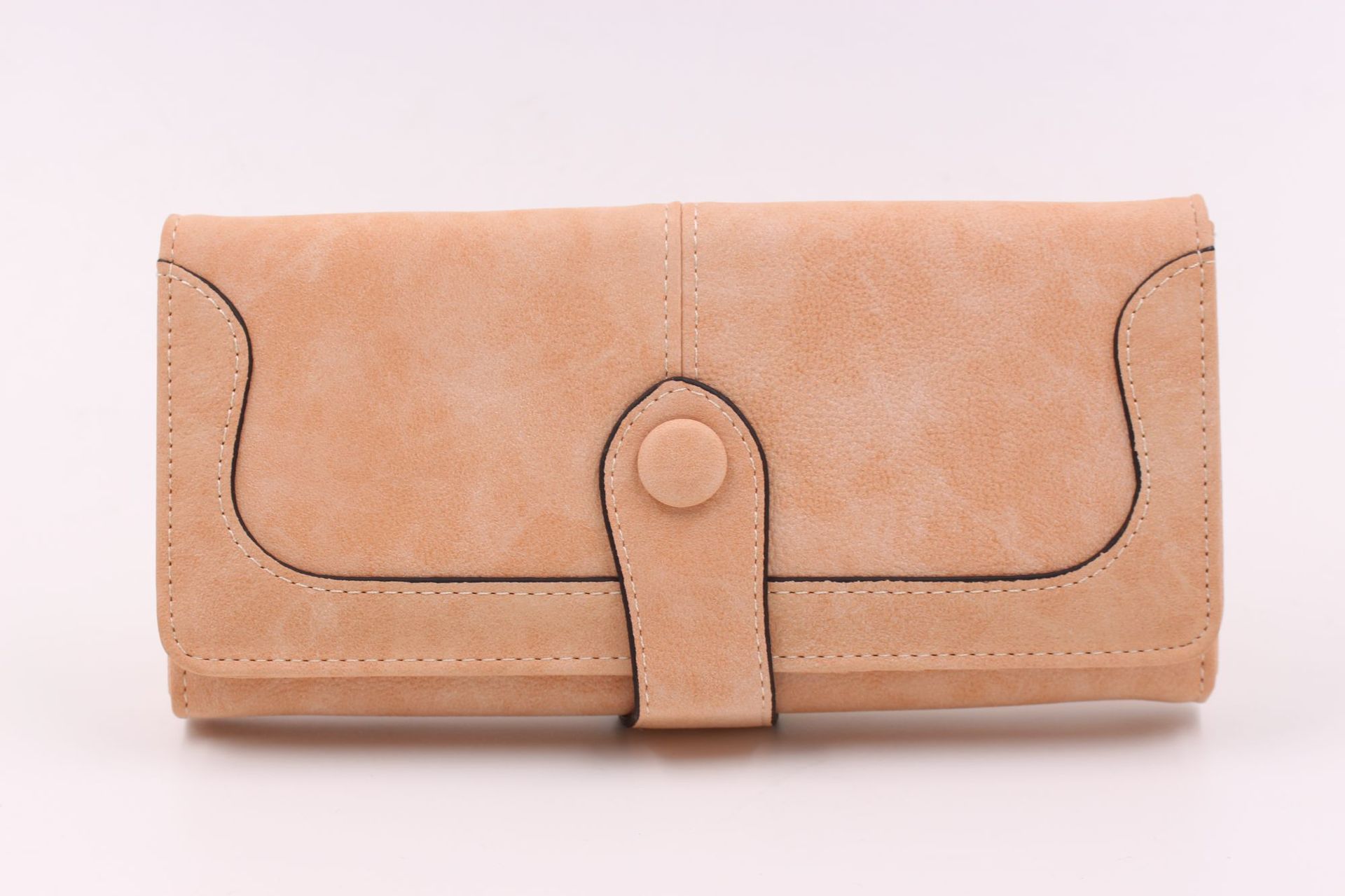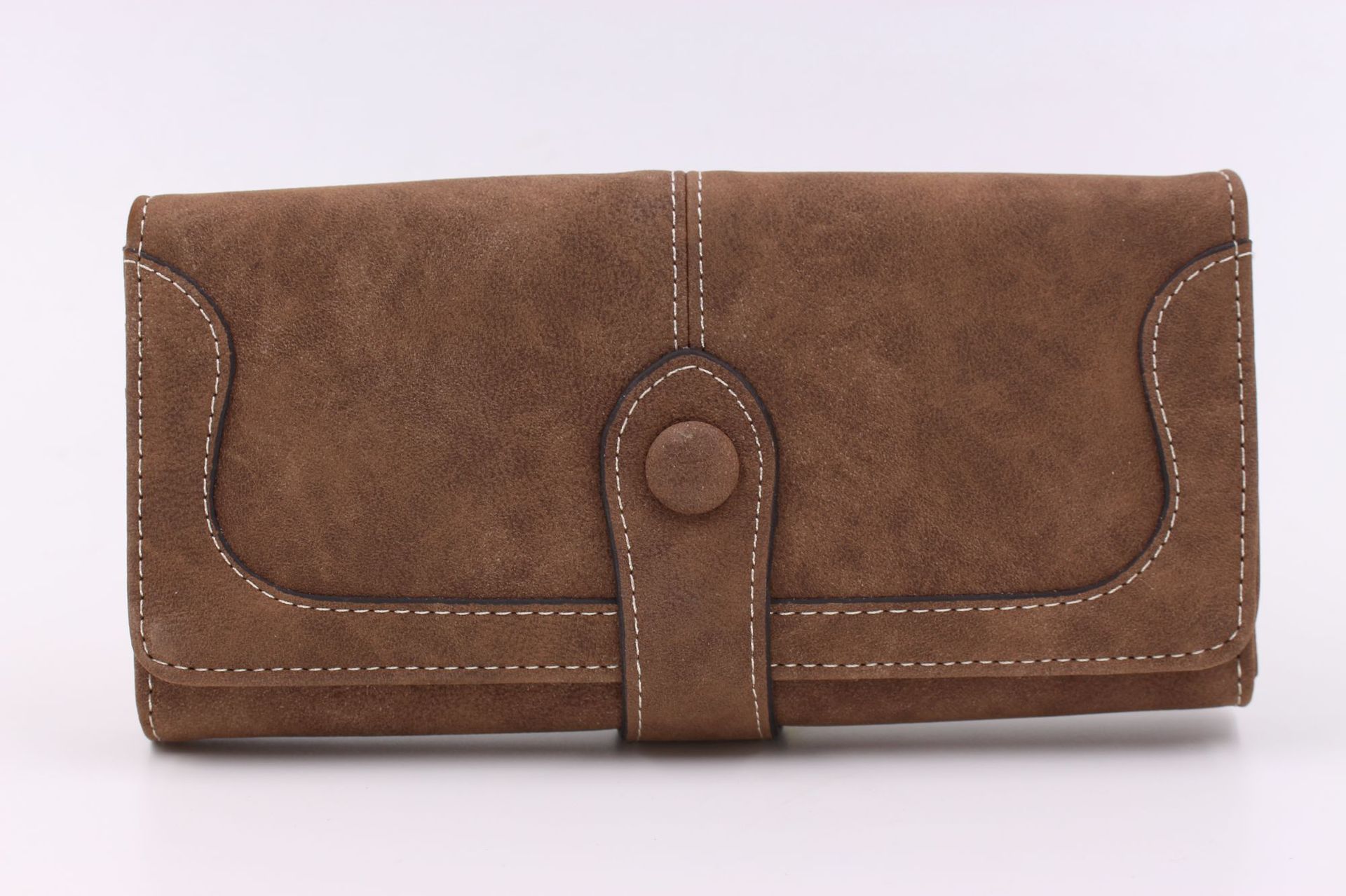 亚马逊跨境外贸爆款女长款钱包欧美复古磨砂拉链搭扣大容量三折包