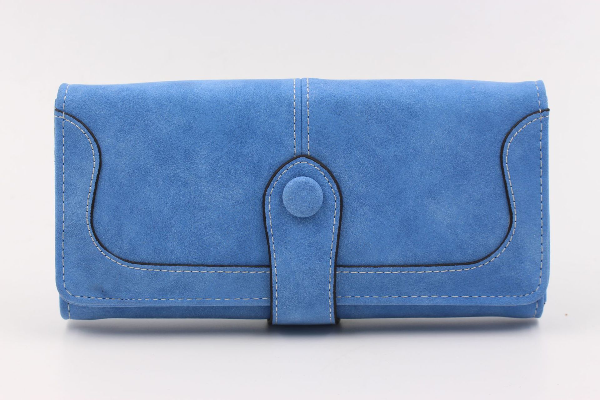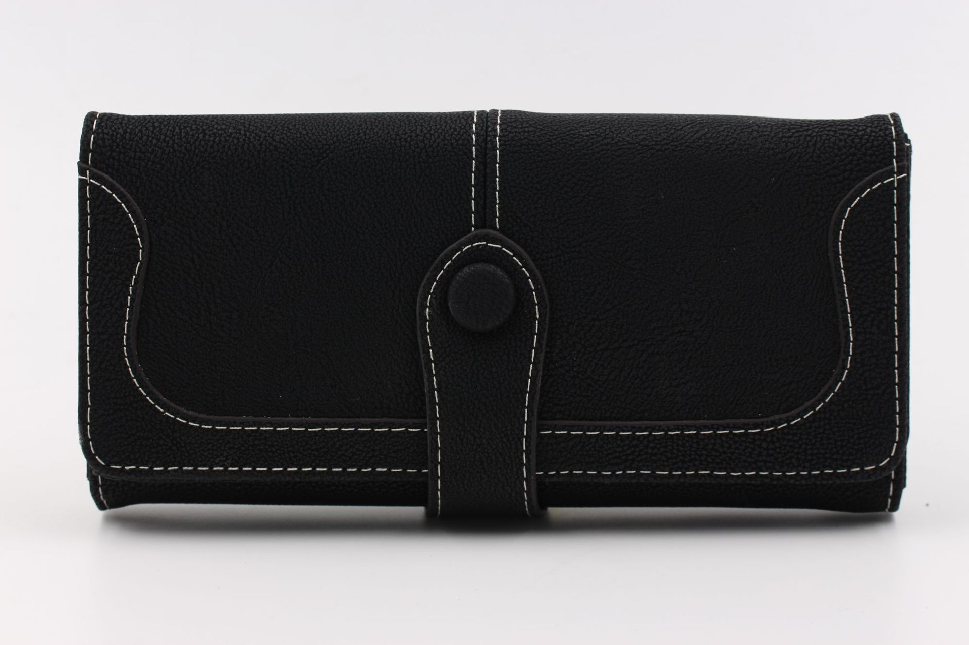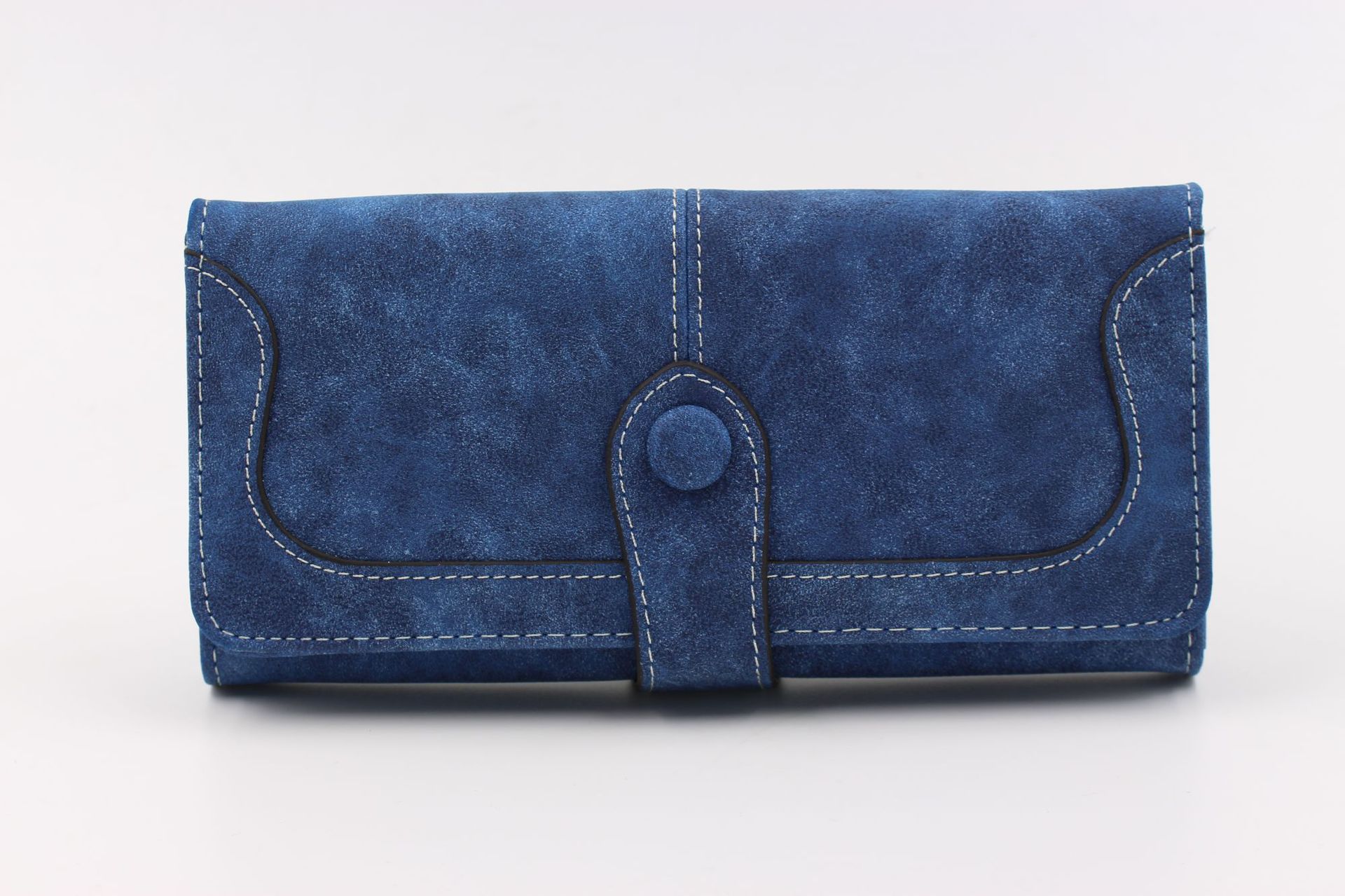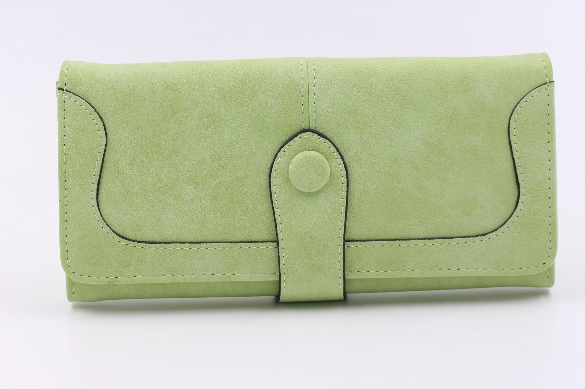 亚马逊跨境外贸爆款女长款钱包欧美复古磨砂拉链搭扣大容量三折包