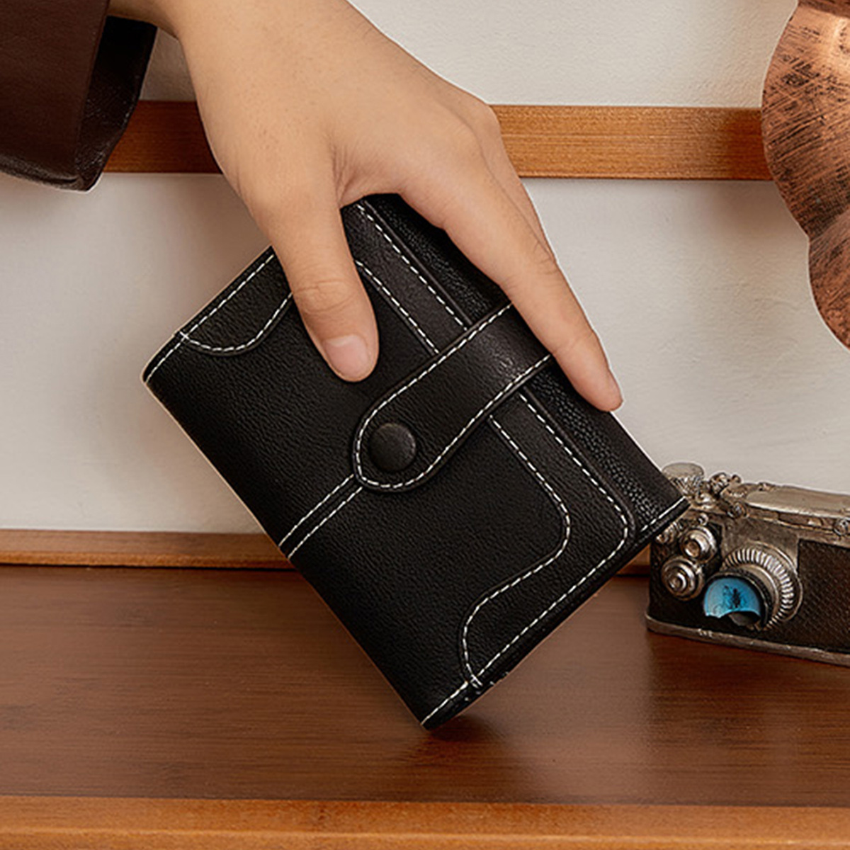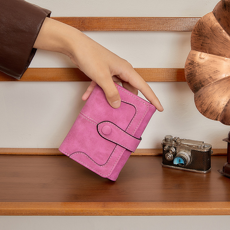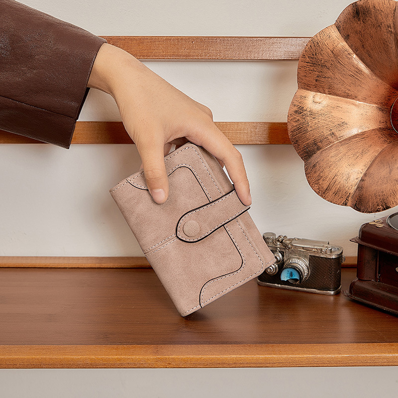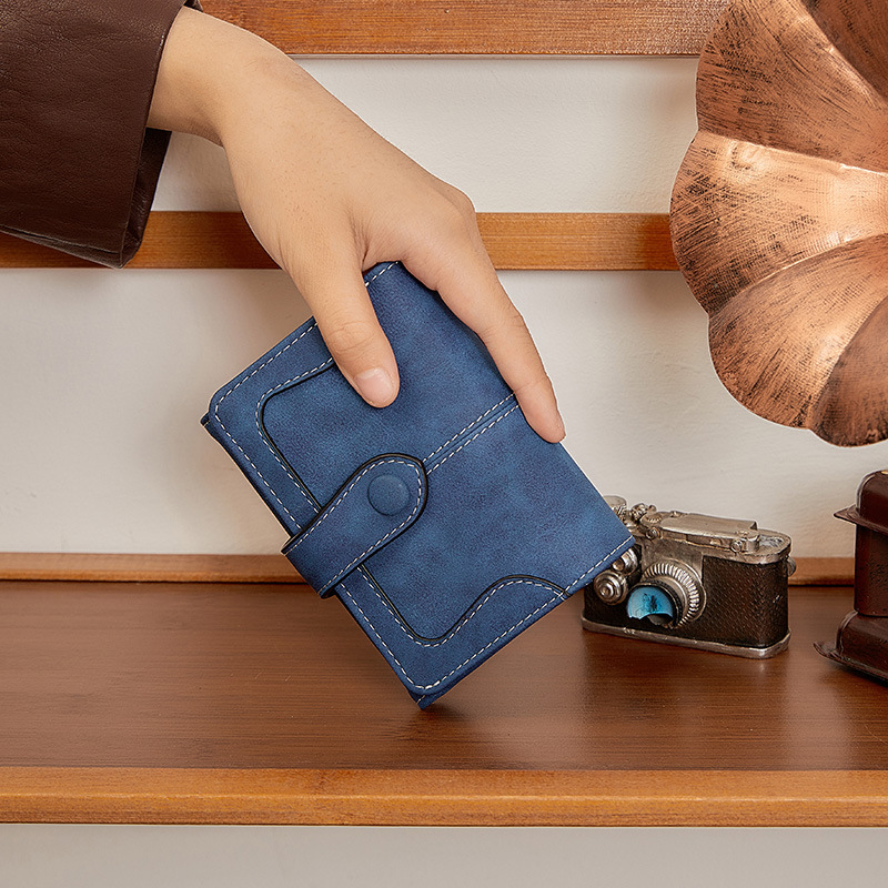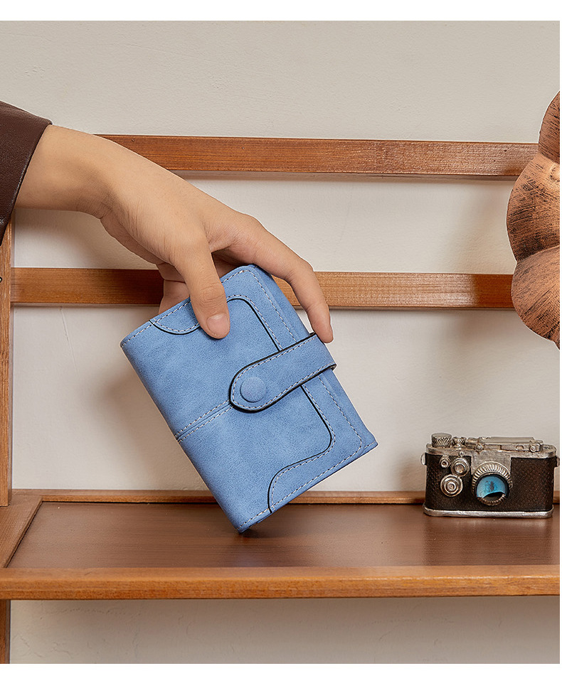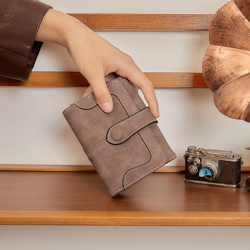 钱包女短款欧美复古PU磨砂五金叶子搭扣拉链折叠多功能学生零钱包