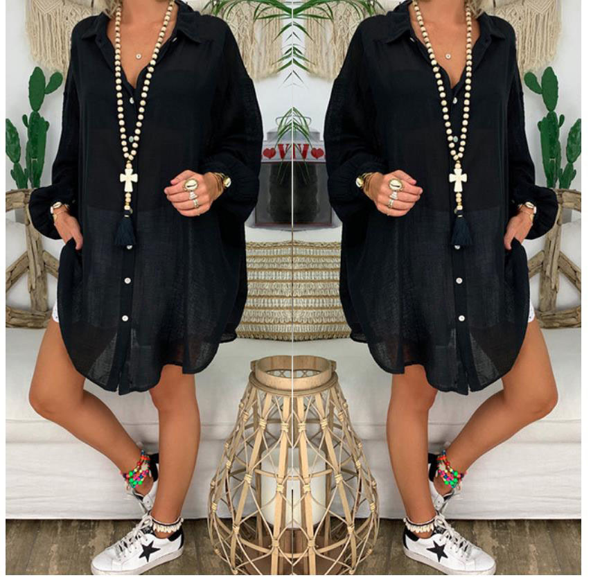 국경 간 대외 무역 2022 유럽과 미국 면 린넨 셔츠 플러스 사이즈 여자의 단추 느슨한 긴 소매 캐주얼 셔츠 여자의 최고스토어 가기