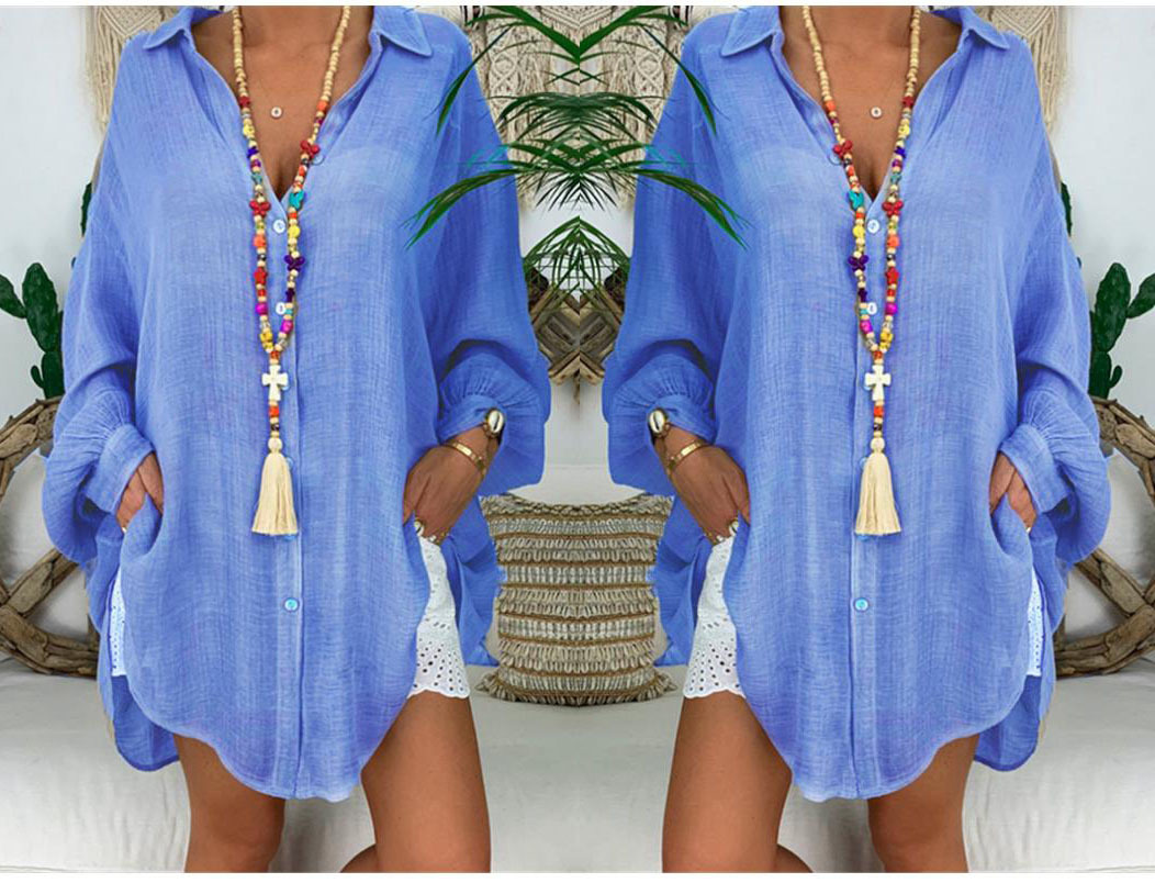 국경 간 대외 무역 2022 유럽과 미국 면 린넨 셔츠 플러스 사이즈 여자의 단추 느슨한 긴 소매 캐주얼 셔츠 여자의 최고