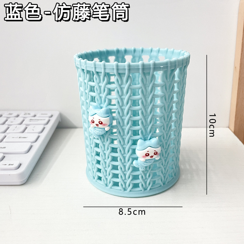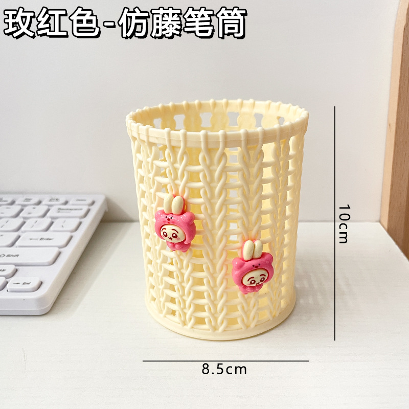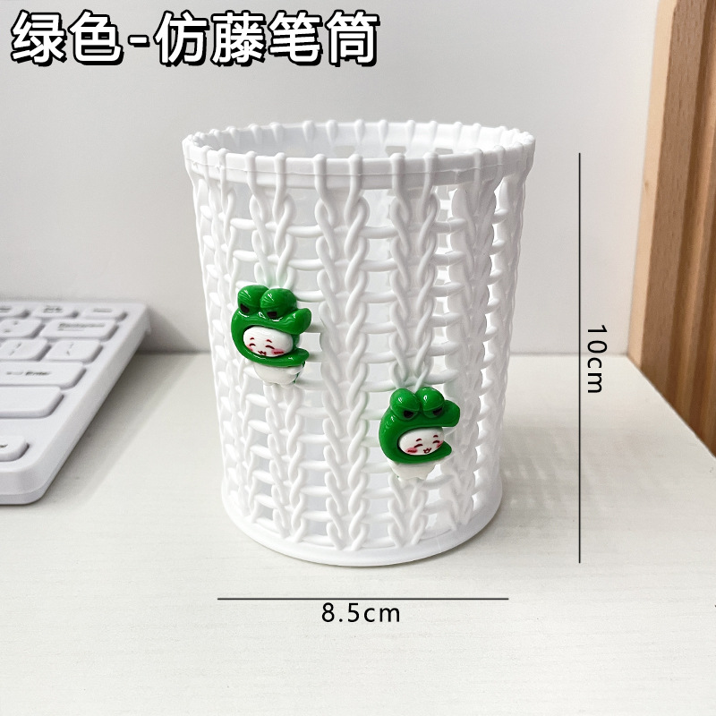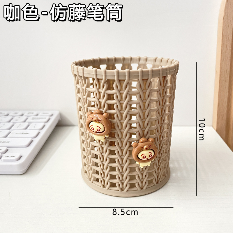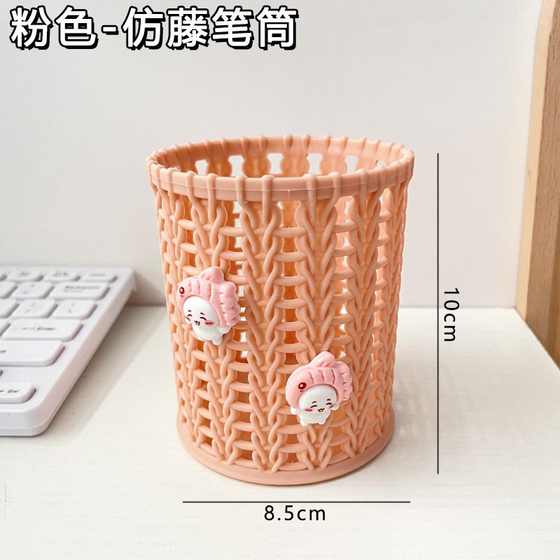 귀여운 만화 모조 등나무 펜 홀더 창조적 인 라운드 스토리지 배럴 학생 데스크탑 문구는 스토리지 박스 장식품 펜 홀더를 조직합니다