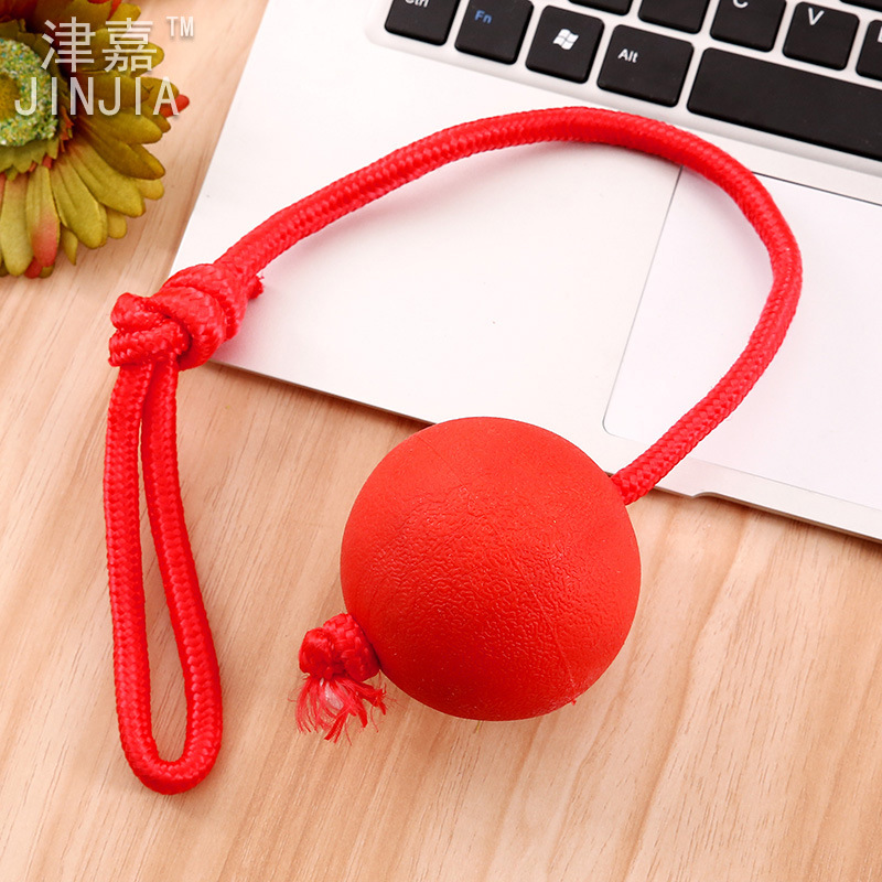 끈으로 묶는 반려동물 씹기 공, 강아지 고무공, 단단한 탄성 장난감 공, 훈련용 강아지 용품, 재고 도매, 내구성 및 내구성