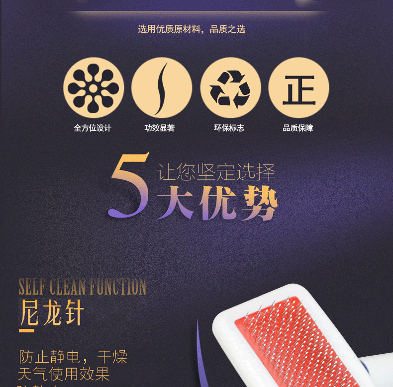 애완견 고양이 빗 보호 헤드 에어백 빗 작은 흰색 빗 밀니들 빗 용품 도매 애완동물 미용스토어 가기
