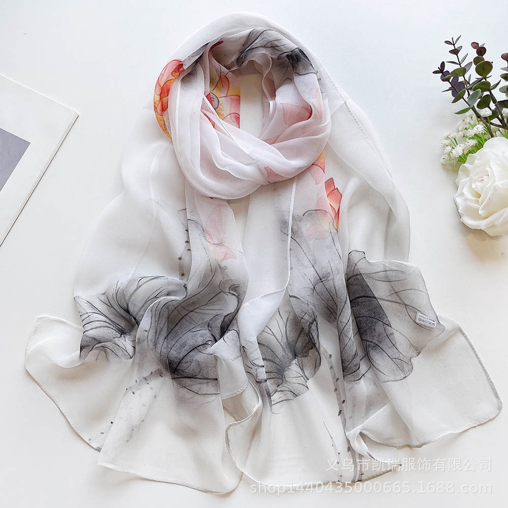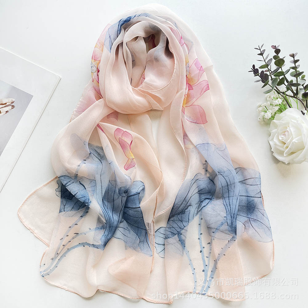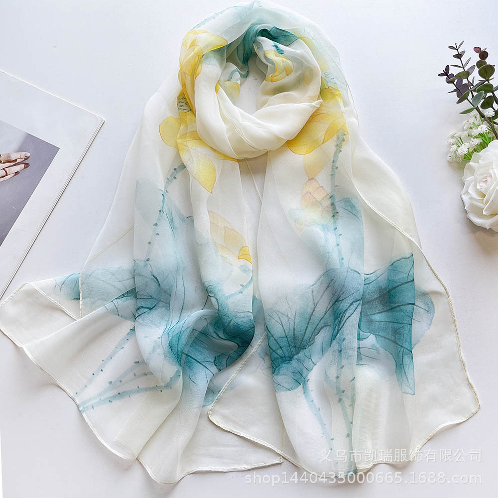 여름 로터스 자외선 차단제 스카프 해변 해변 스카프 도매 긴 숙녀 스카프 연꽃 연못 달빛 얇은 스카프 스카프스토어 가기