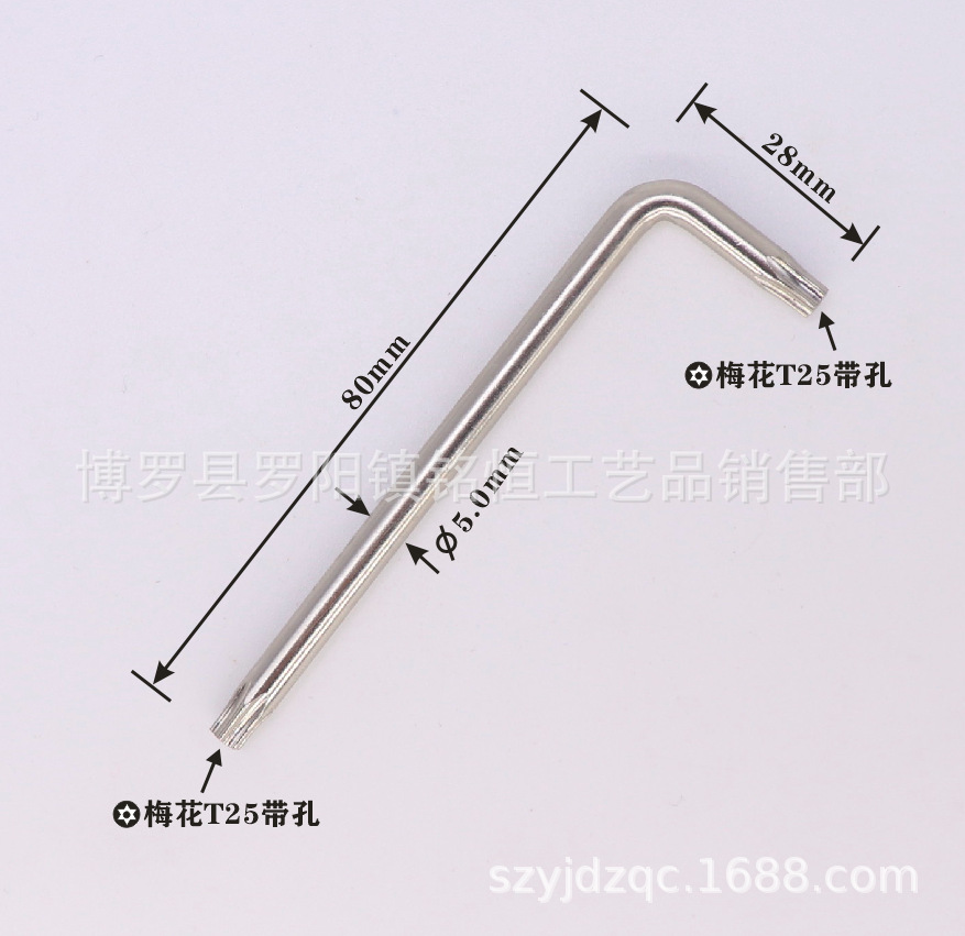 刀杆粗4.5mm,长边(T25梅花锥头)75MM,短边(T25梅花锥头)25MM,