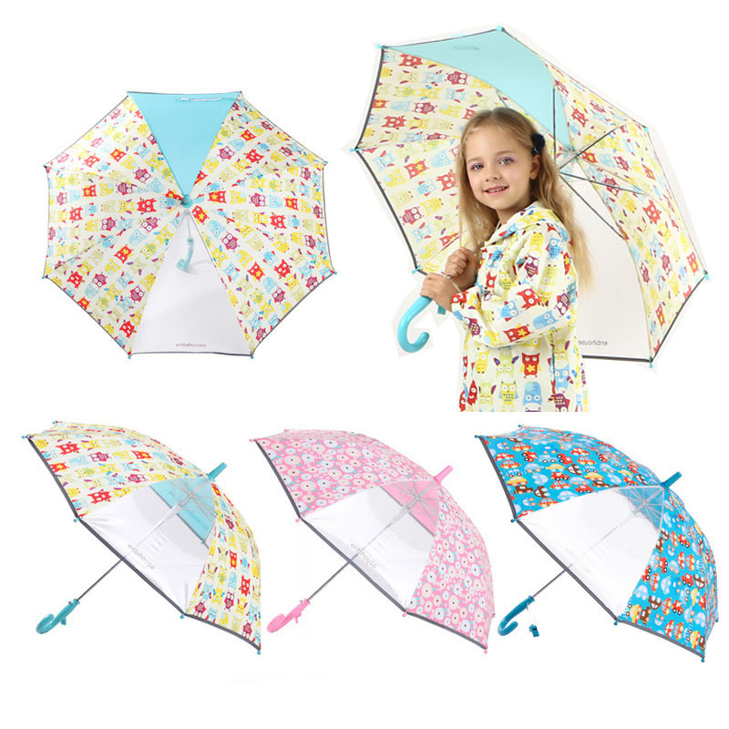 북유럽 스타일의 청 enbihouse 크로스 보더 귀여운 올빼미 만화 반사 차양 자동 우산 어린이 우산스토어 가기