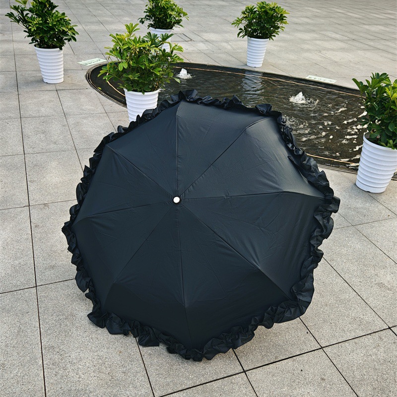 태양 우산 일본식 새로운 도착 3 배 작은 곡선 후크 레이스 블랙 접착제 태양 보호 태양 우산 일반 햇빛 휴대용 우산스토어 가기
